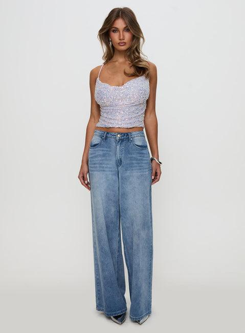 Cowl neck sequin top Ruched, adjustable straps, crop fitting Non-stretch material, fully lined Princess Polly Lower Impact Main 1: 100% reclaimed PET, Main 2: 97% polyester 3% elastane, Lining: 95% polyester 5% elastane Cold hand wash