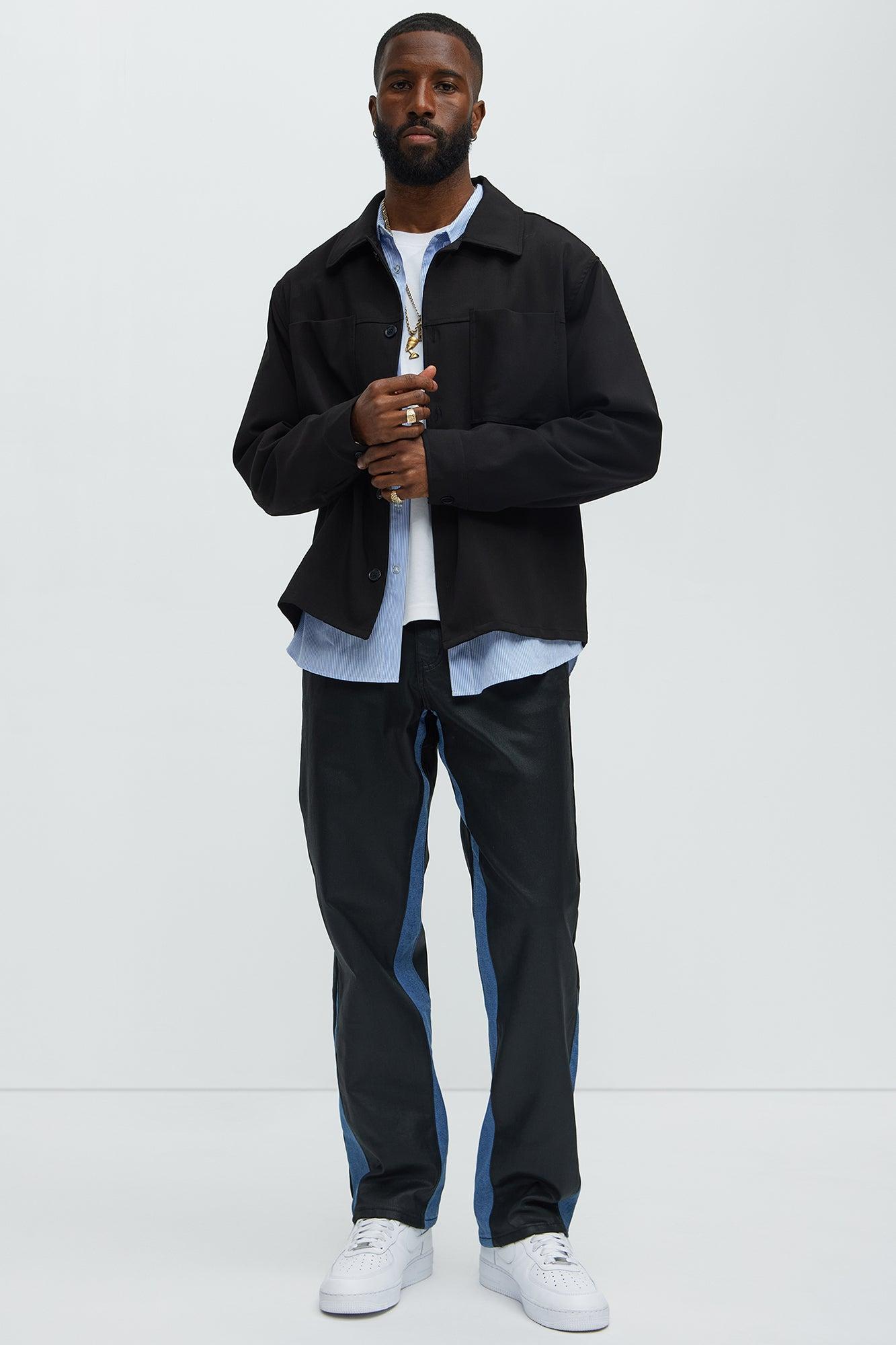 Wesley Wax Coated Straight Jeans - Black/combo