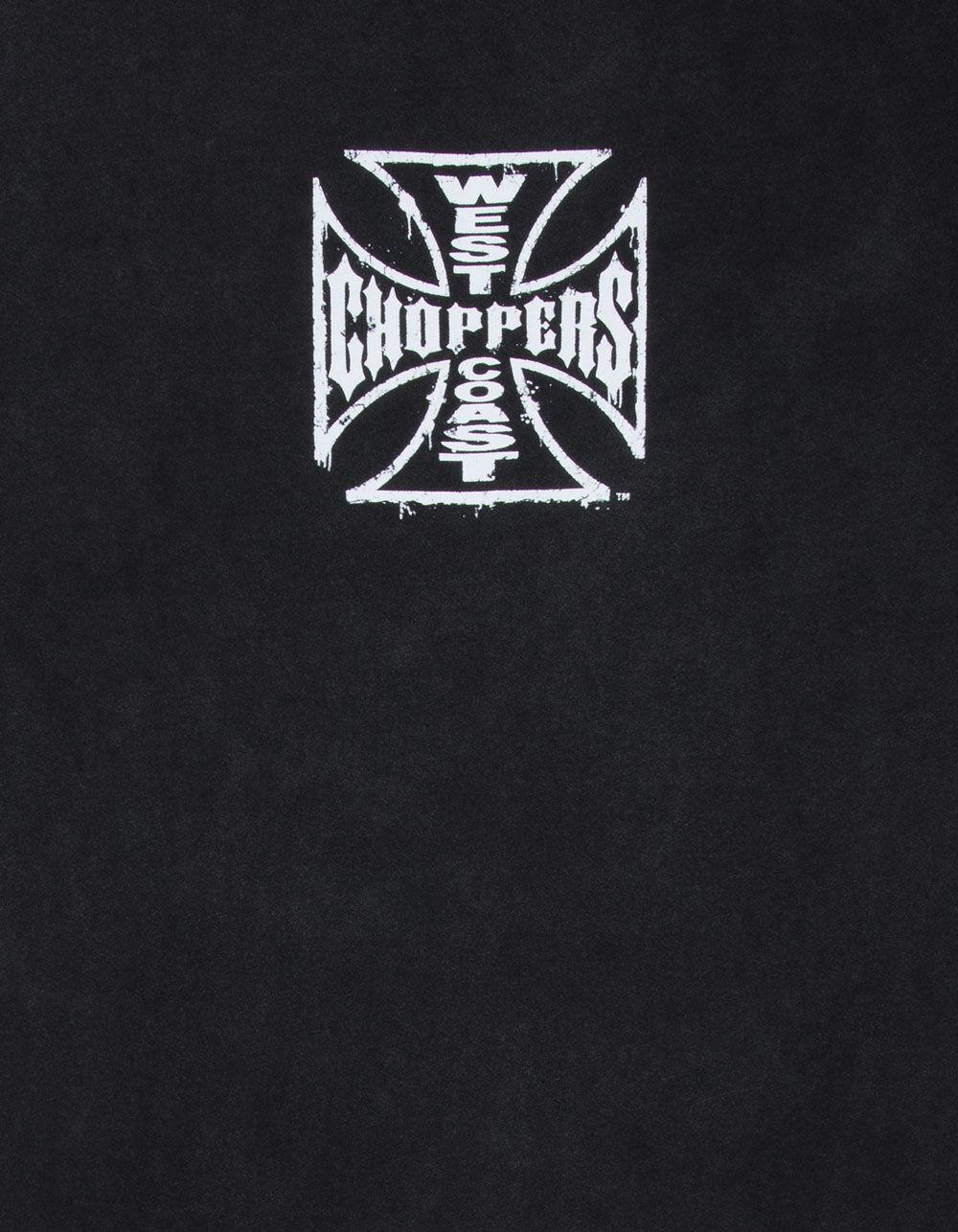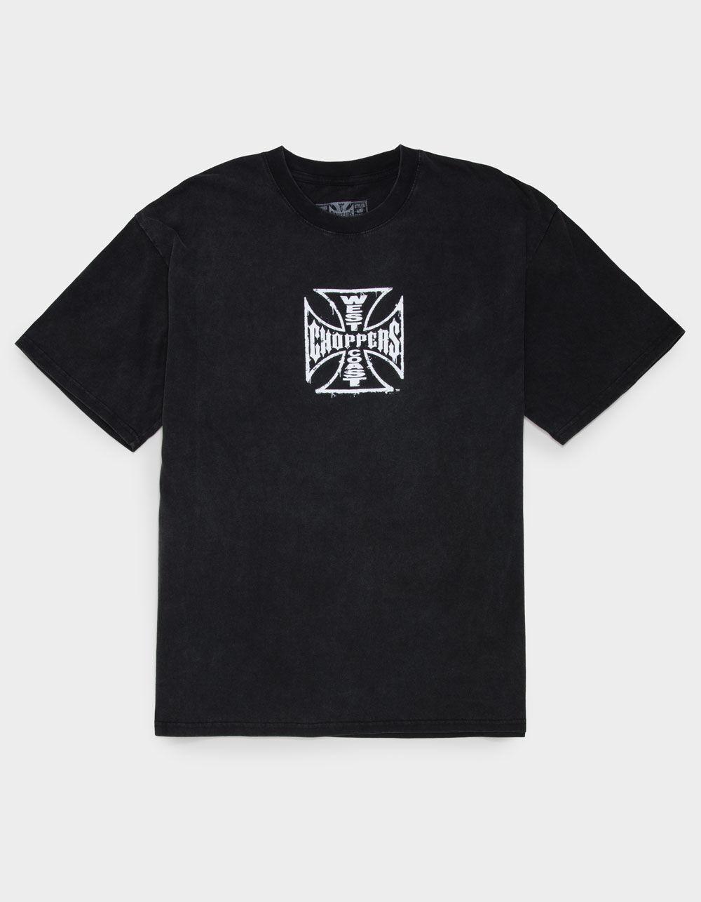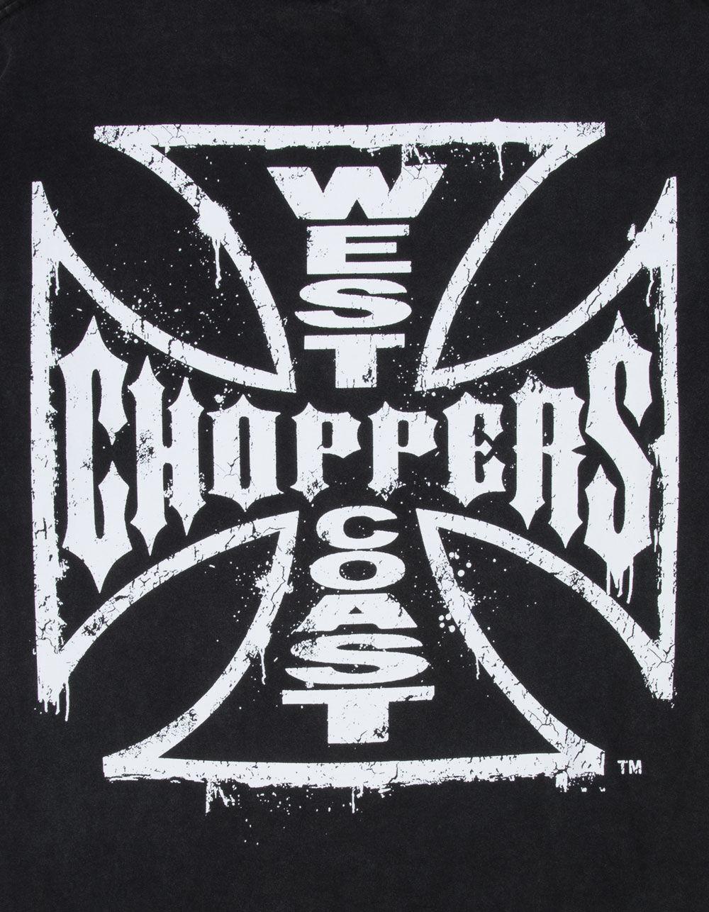 West Coast Choppers Core Logo Tee. Graphic screened at chest. Large graphic on back. Garment washed for a vintage, lived-in look. Crew neck. Short sleeve. 100% Cotton. Machine wash. Imported.