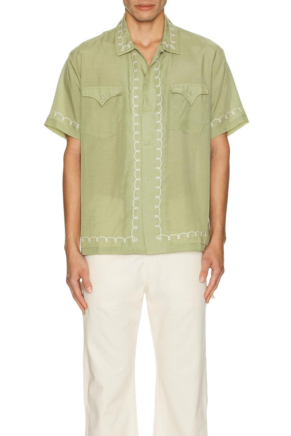 shirt89% tencel, 11% linen / Made in China / Machine wash / Front button closure / Chest flap pockets with button closure / Contrast stitching throughout / Lightweight voile fabric / Our Style No. DOUR-MS92 / Manufacturer Style No. DR106 / Model is wearing size L.