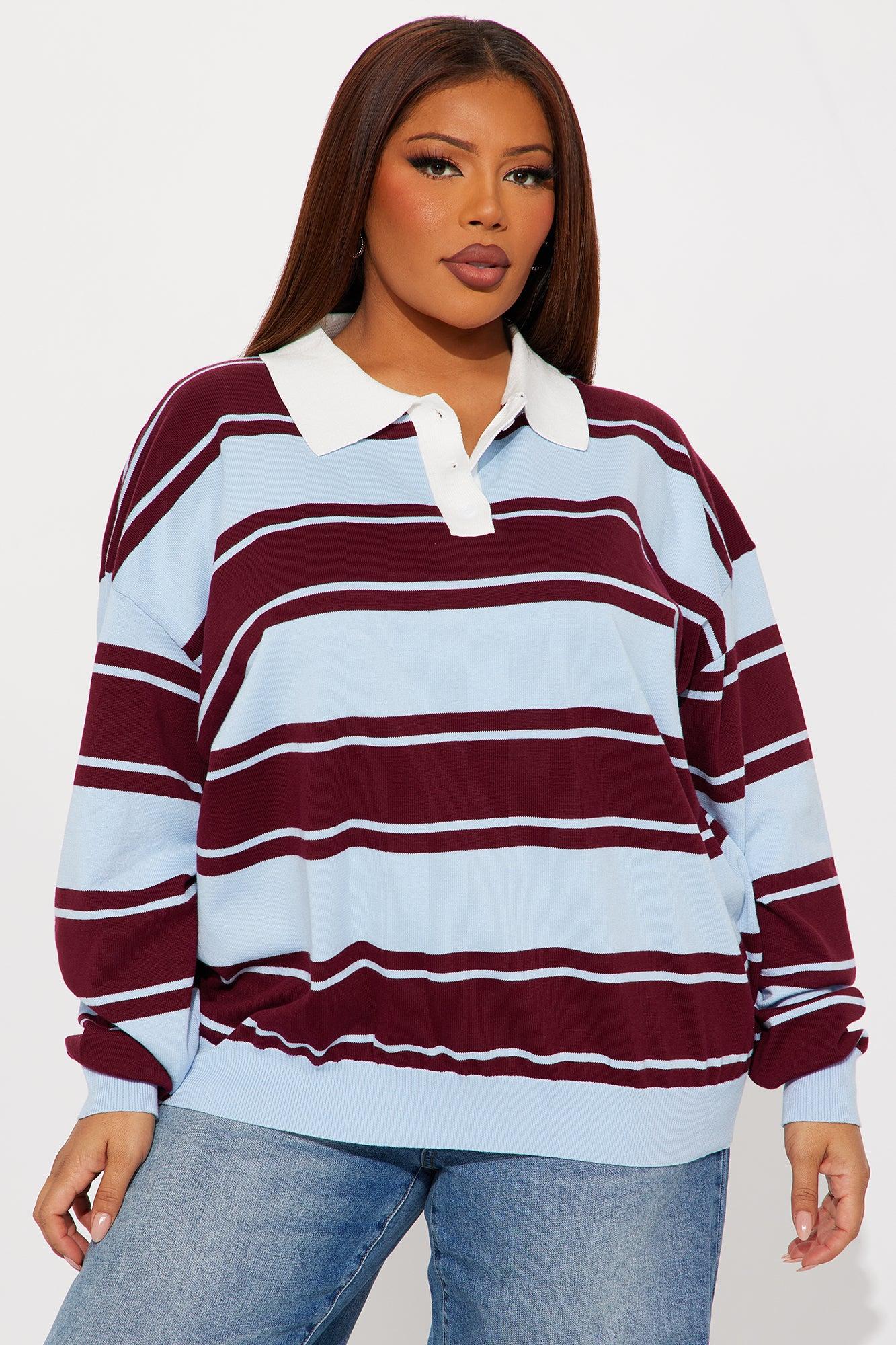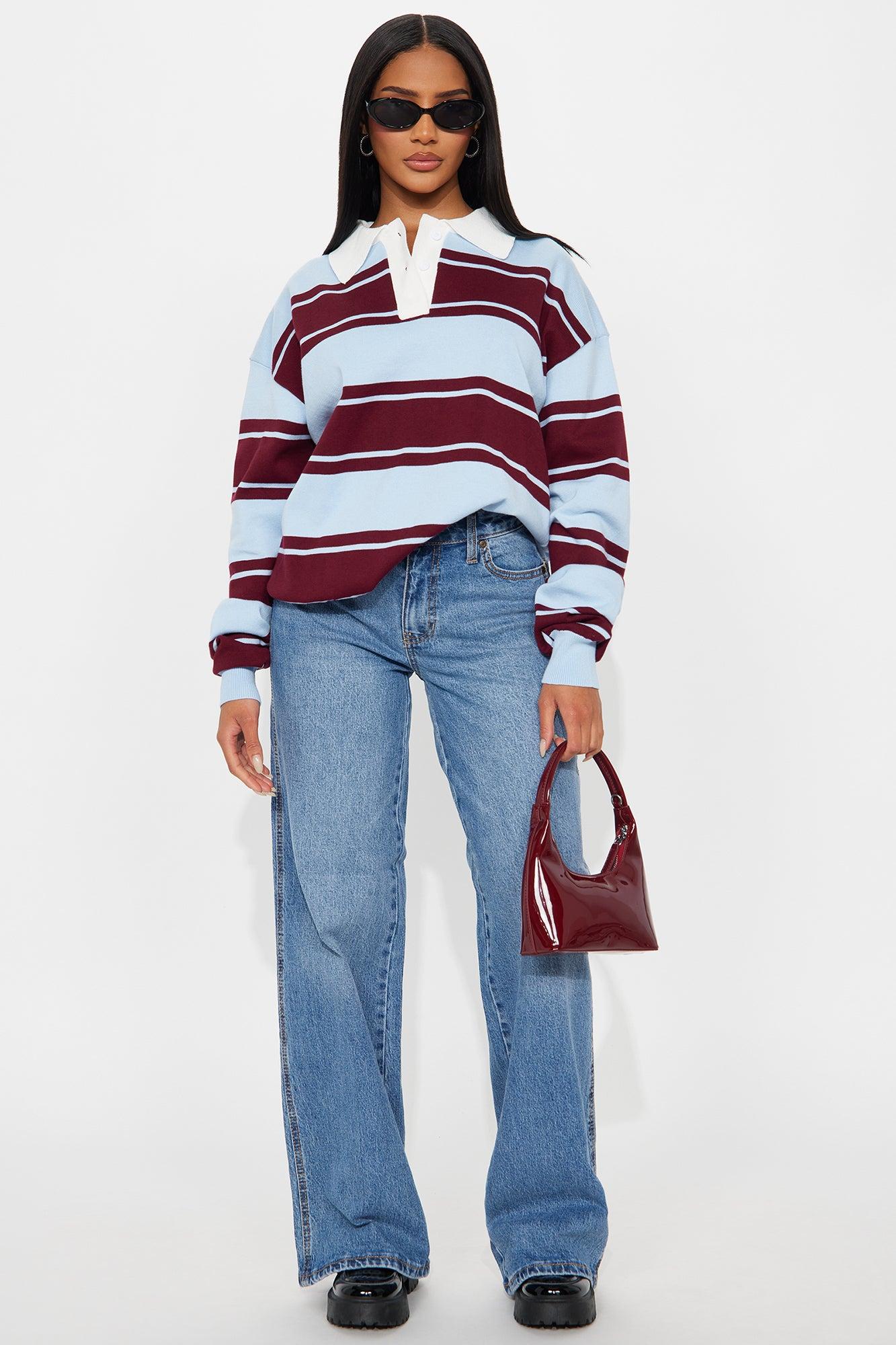 West Coast Striped Rugby Polo Sweater - Blue/combo