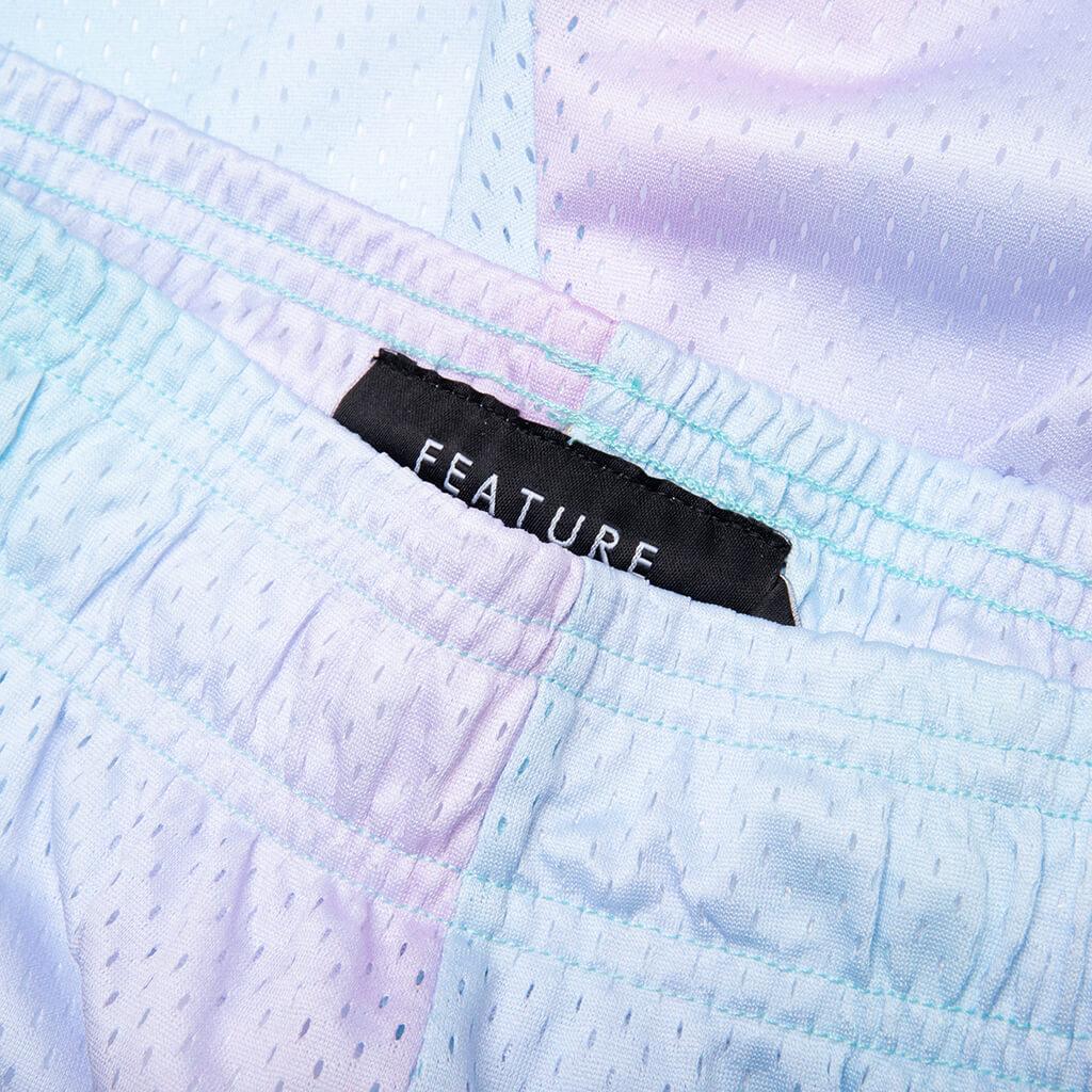 The West Mesh Shorts in Opal is an exclusive piece to FEATURE, these shorts feature a standard fit and are crafted from breathable polyester, ensuring optimal airflow and comfort. Designed with practicality these shorts include side seam pockets and a single rear welt pocket. An inner drawcord waistband provides a secure, adjustable fit. The satin-stitched embroidered FEATURE logo on the front adds a distinctive touch. Exclusive to FEATURE Standard fit Breathable polyester/athletic mesh construction Viscose lining Side seam pockets Single rear welt pocket Inner drawcord waistband Satin-stitched embroidered FEATURE logo Style No: F091123X04O