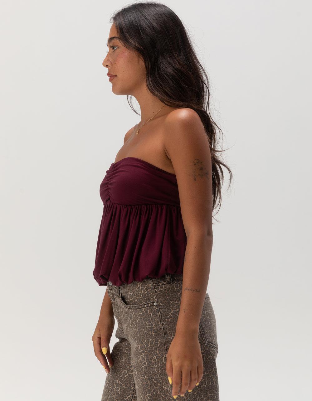WEST OF MELROSE Bubble Hem Womens Tube Top - BURGUNDY