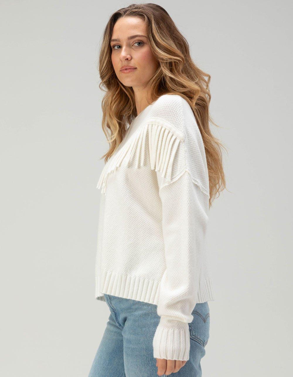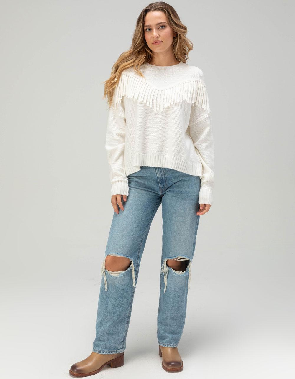 WEST OF MELROSE Fringe Womens Sweater - CREAM
