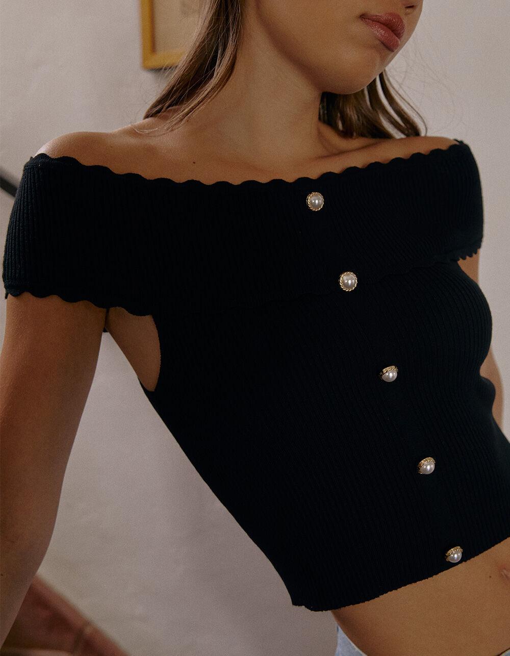 WEST OF MELROSE Off The Shoulder Button Front Top - BLACK