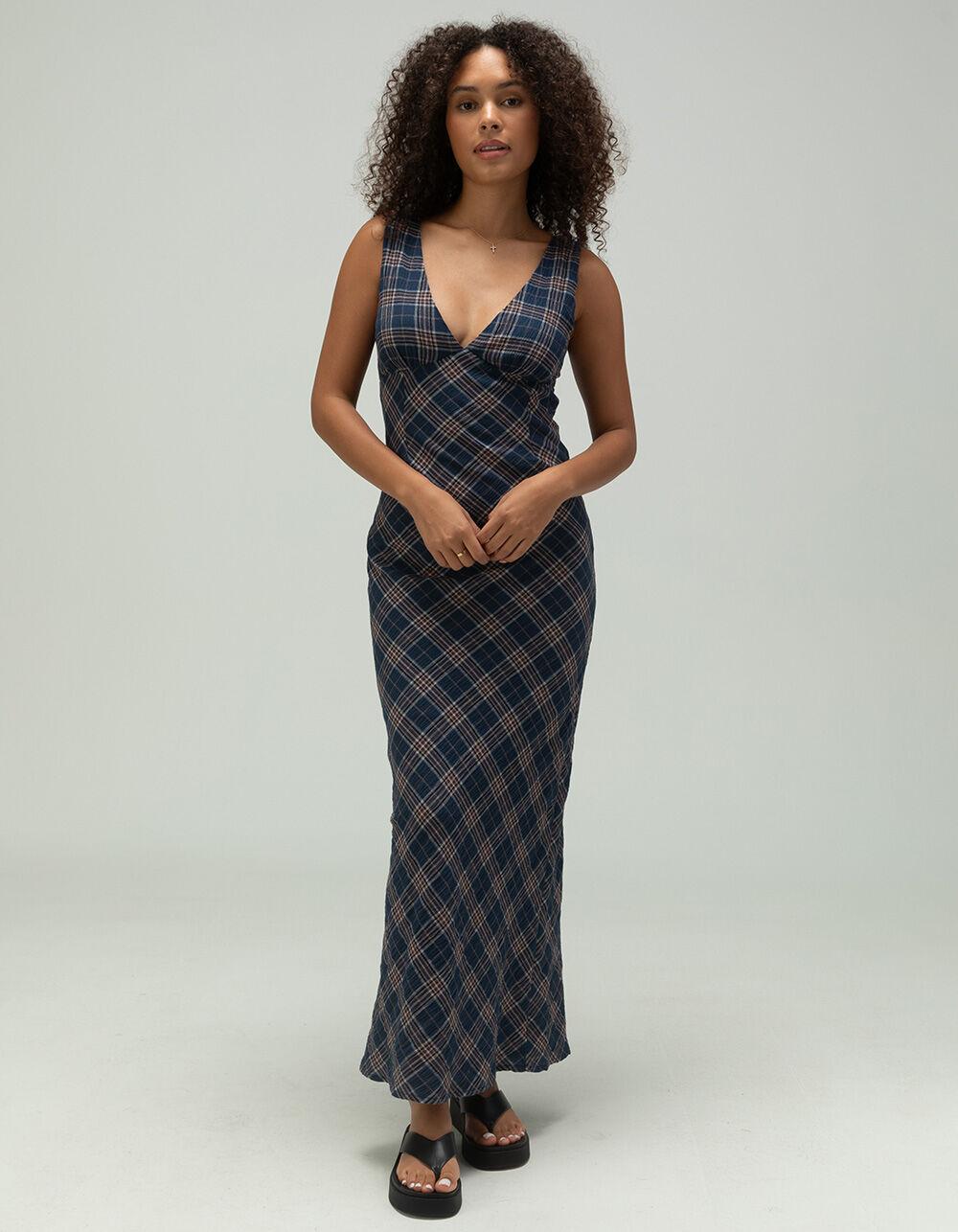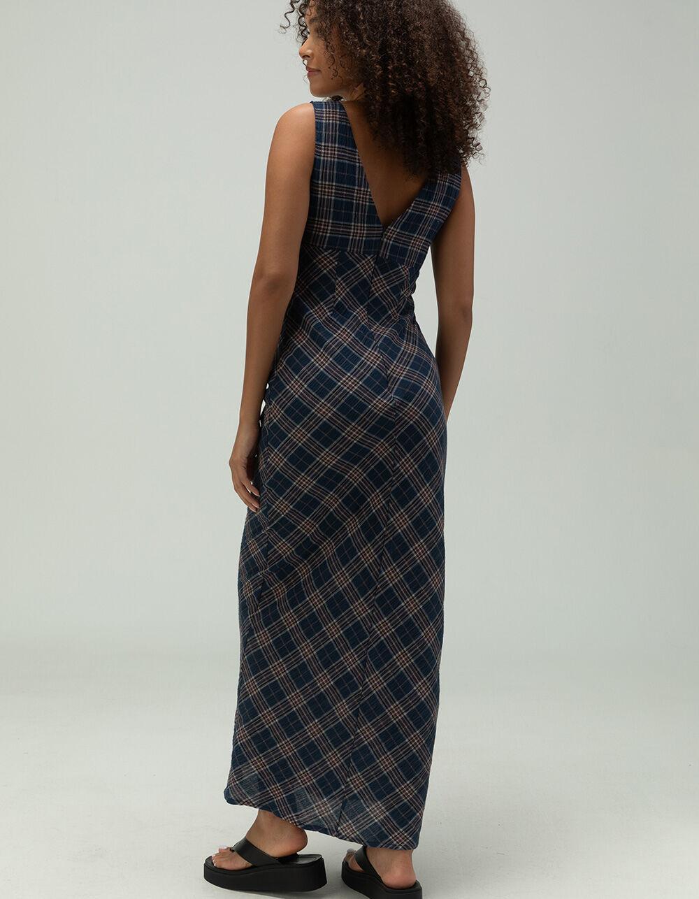 WEST OF MELROSE Plaid Womens Maxi Dress - BLUE COMBO