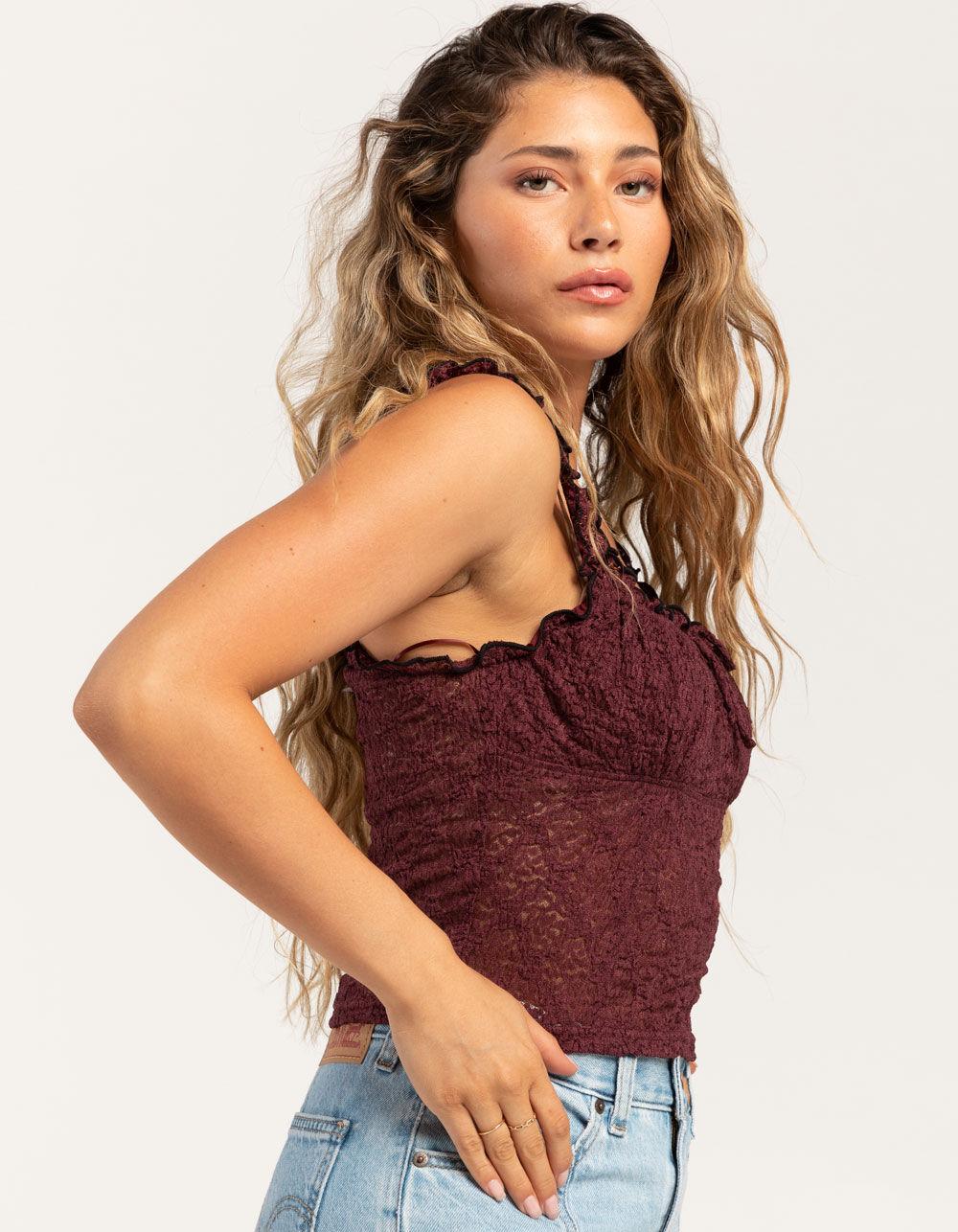 WEST OF MELROSE Womens Lace Top - BURGUNDY