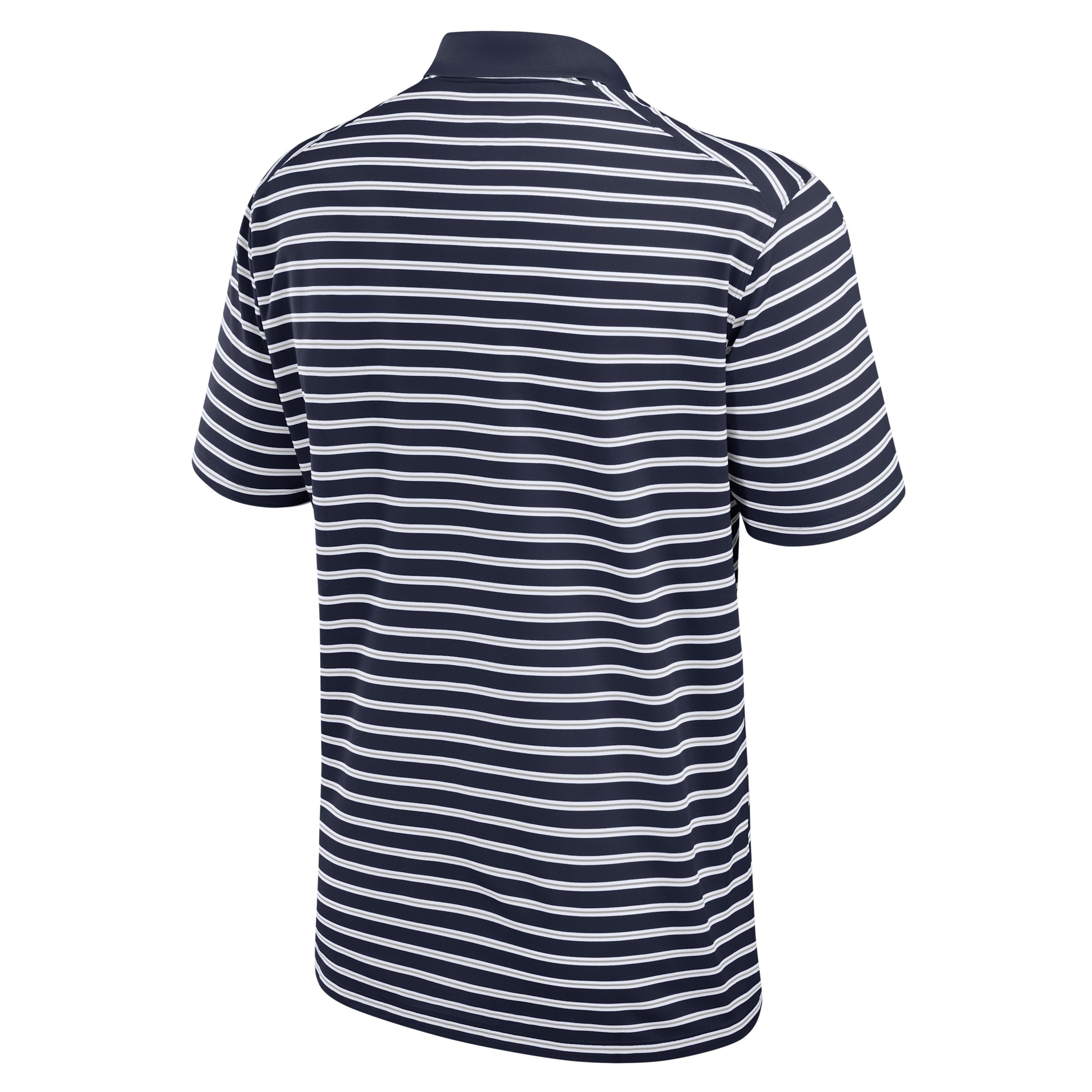 Combining sweat-wicking technology and breathable pique fabric, the Primetime Victory Striped Polo helps you comfortably represent the Michigan Wolverines with team embroidery and a traditional pattern. Benefits:Nike Dri-FIT technology moves sweat away from your skin for quicker evaporation, helping you stay dry and comfortable. Fold-over collar with 2-button placket provides a modern look. [] Product Details:100% polyester. Machine wash. Imported. Style: 0JLX0BCXMWN; Color: Navy; Size: XL; Gender: Male; Age Group: Adult | Michigan Wolverines Primetime Victory Striped Men's Jordan Dri-FIT College Polo in Blue, Size: XL | 0JLX0BCXMWN-QX7
