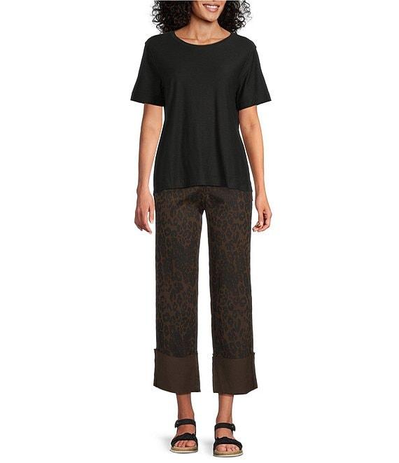 Westbound Animal Print Cropped High Rise Wide Cuff Straight Leg Pants
