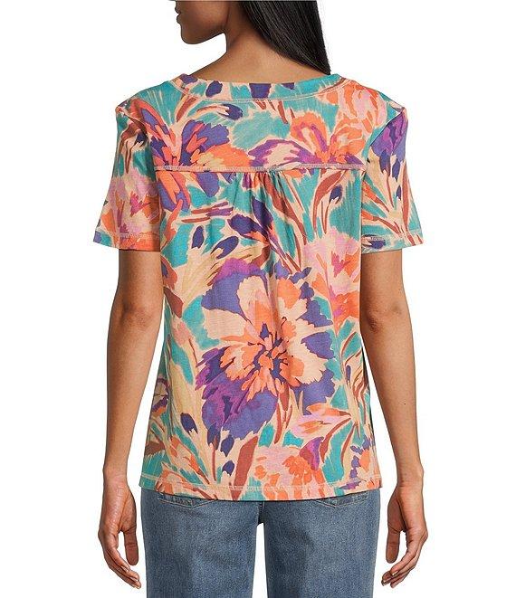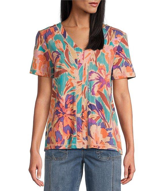 Westbound Brushstroke Blossom Floral Short Sleeve V-Neck Top