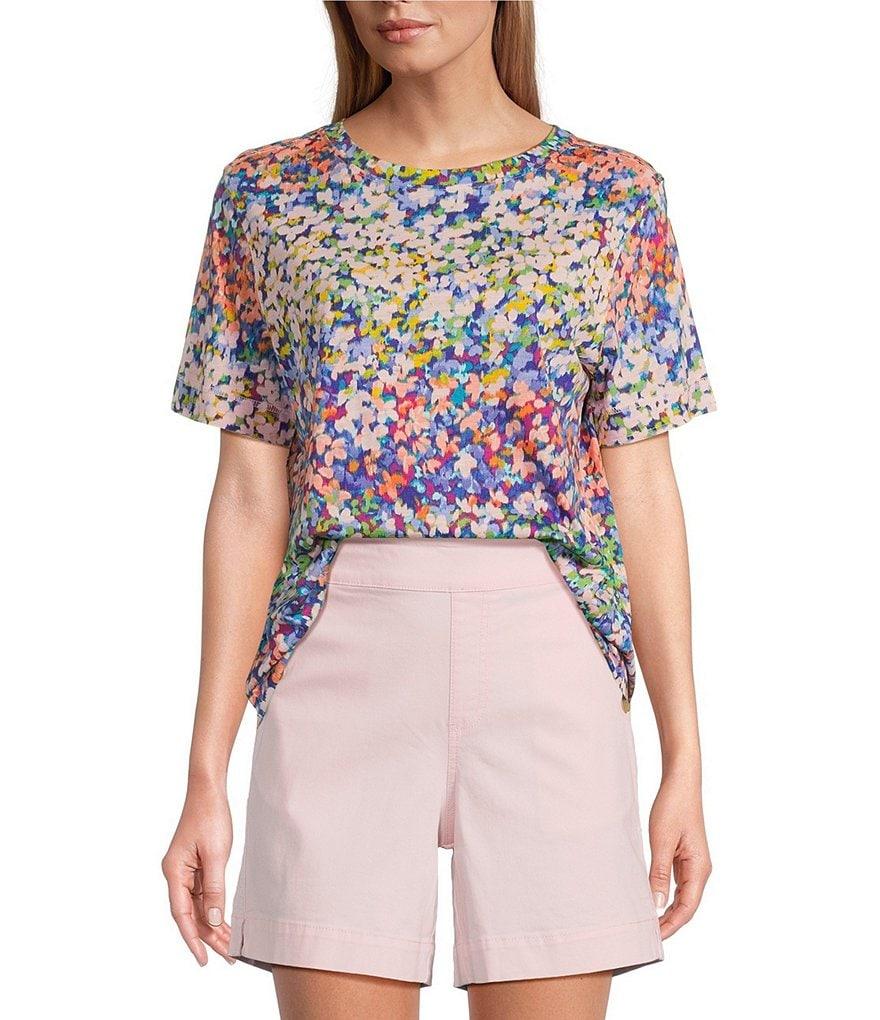 Westbound Floral Raindow Short Sleeve Crew Neck Top