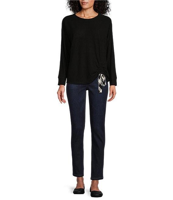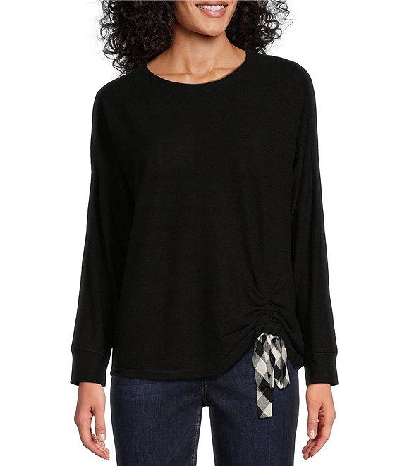 Westbound Knit Long Sleeve Crew Neck Ruched Shirt