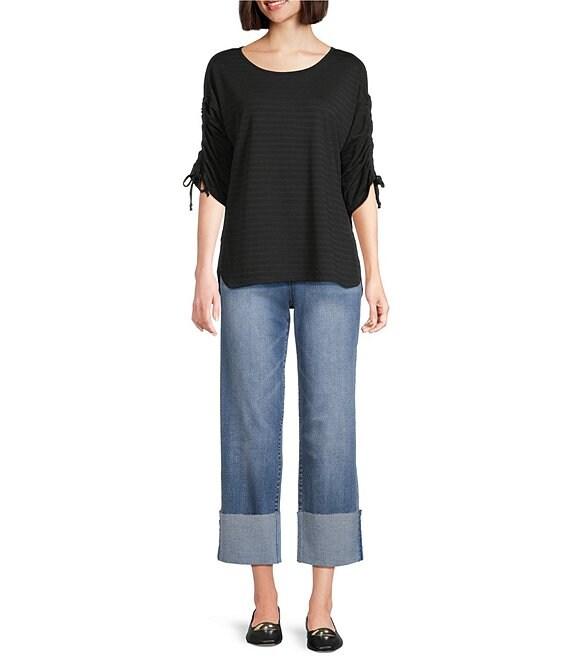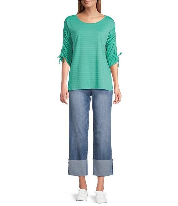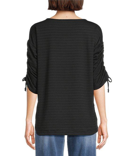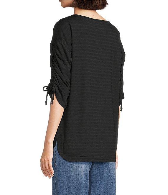 Westbound Petite Knit 3/4 Ruched Sleeve Crew Neck Top