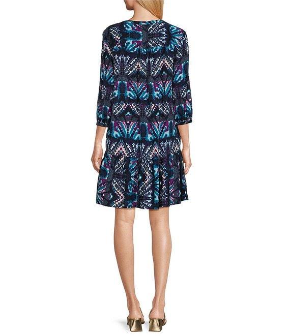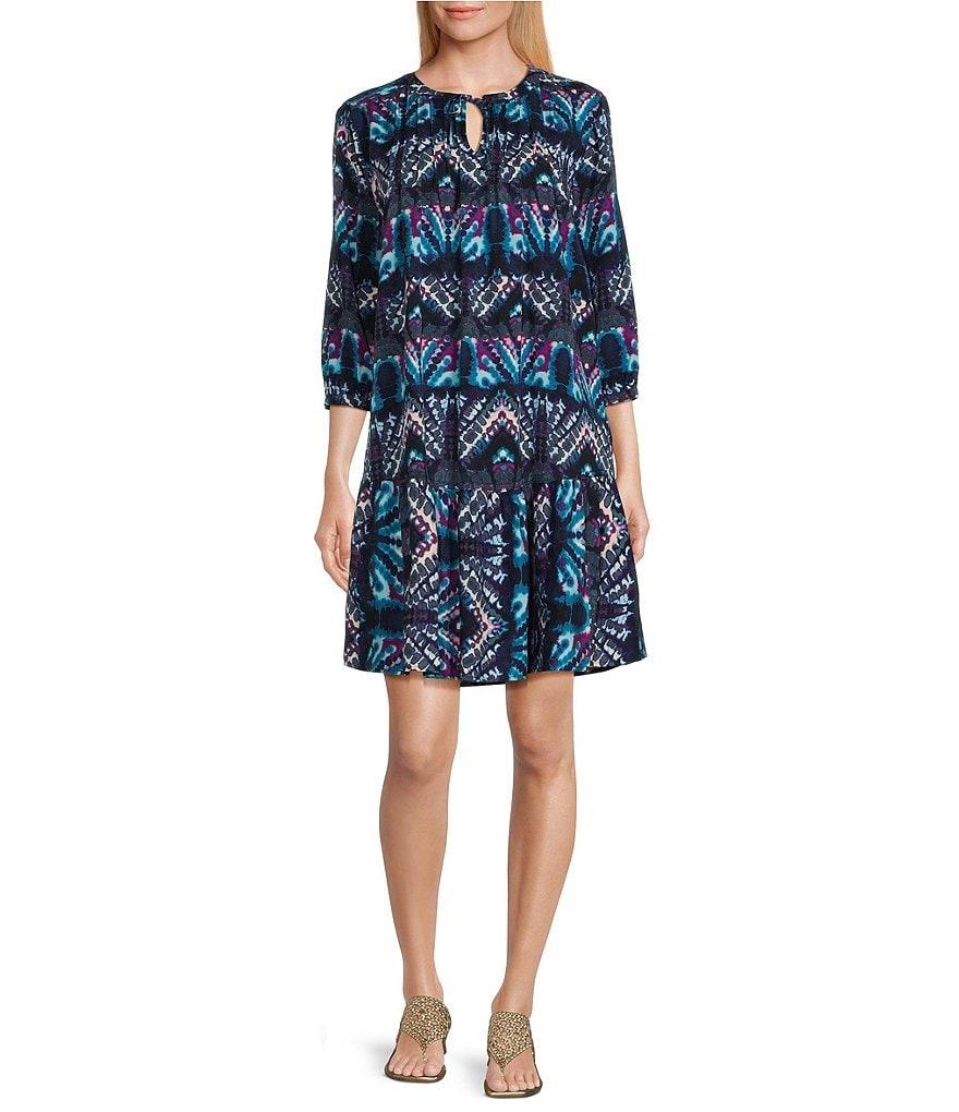 Westbound Petite Size Blurred Patels Bracelet Sleeve Tie Neck Dress