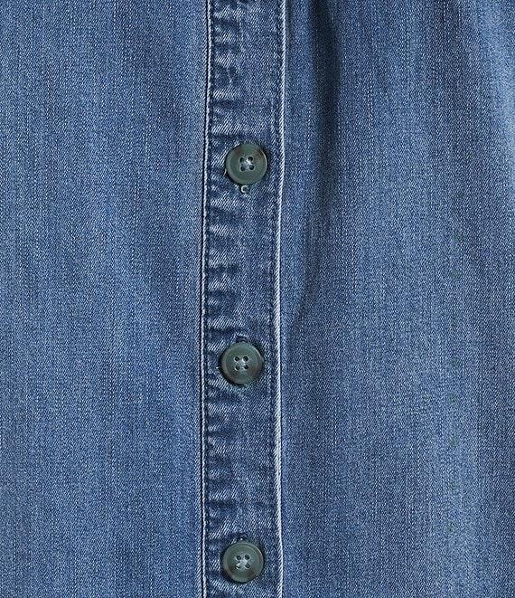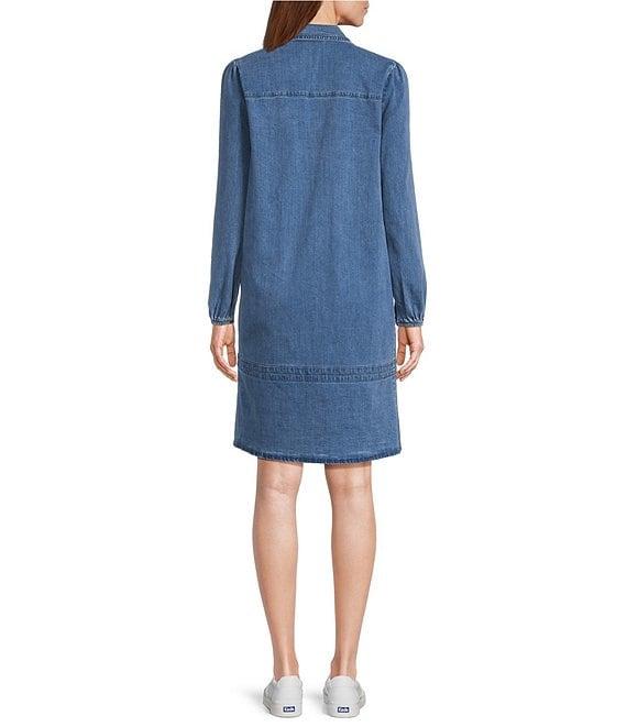 Westbound Petite Size Denim Smocked Long Sleeve Y-Neck Shirt Dress
