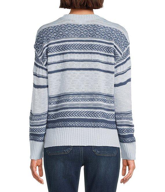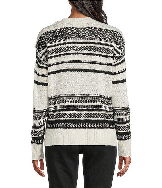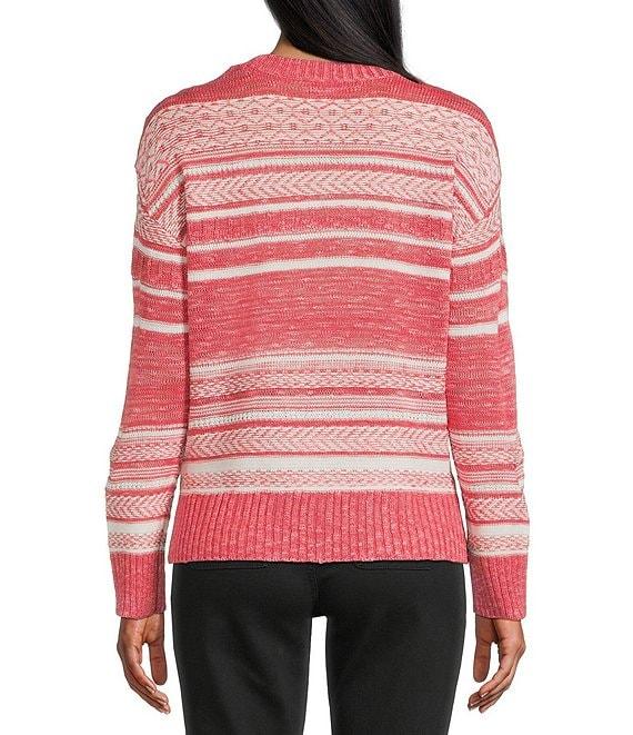 Westbound Petite Size Jacquard Long Sleeve Acrylic Crew Neck Sweater