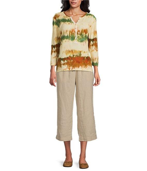 Westbound Petite Size Knit Dark Cream Autumn Sun 3/4 Sleeve Henley Top