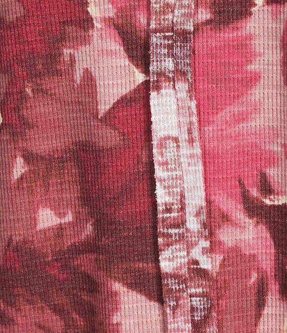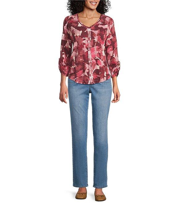 Westbound Petite Size Knit Fest Fuchsia Abstract Foliage 3/4 Bell Sleeve V-Neck Top