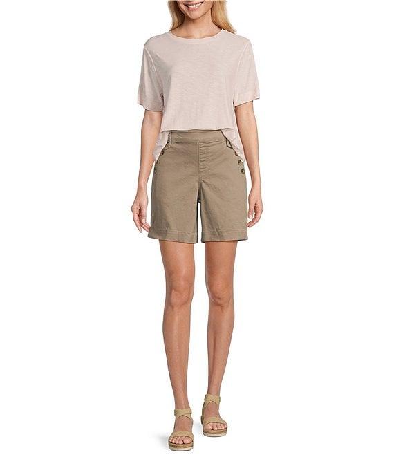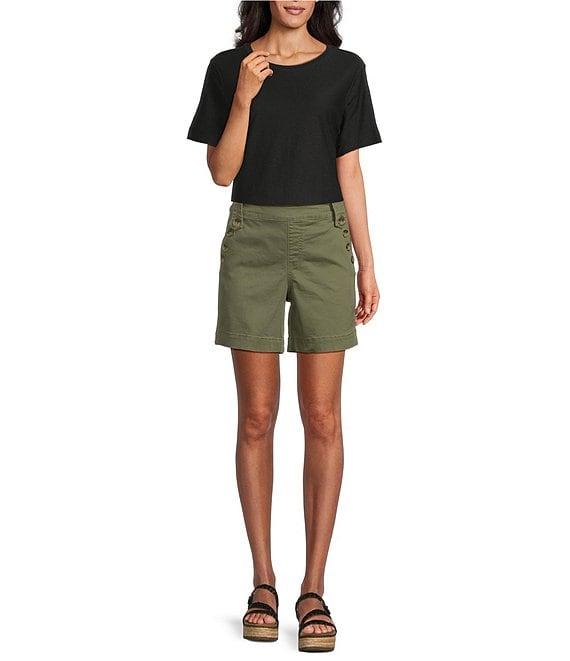 Westbound Petite Size Pull-On Button Embellished Marina Shorts
