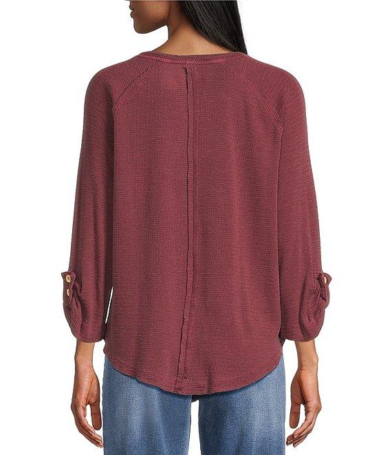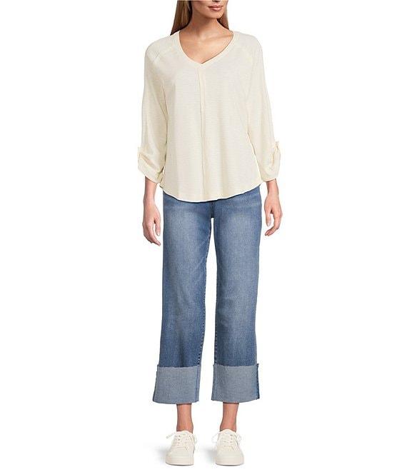 Westbound Petite Size Solid Knit 3/4 Bell Sleeve V-Neck Top