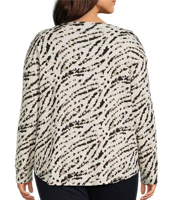 Westbound Plus Cream/Black Print Movement Long Sleeve Crew Neck Pullover