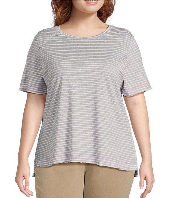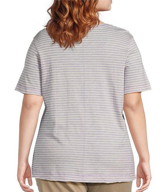 Westbound Plus Size Lilac Speckled Stripe Short Sleeve Crew Neck Top