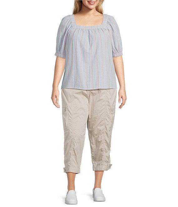 Westbound Plus Size Short Sleeve Stripe Square Neck Top