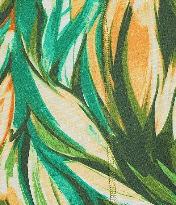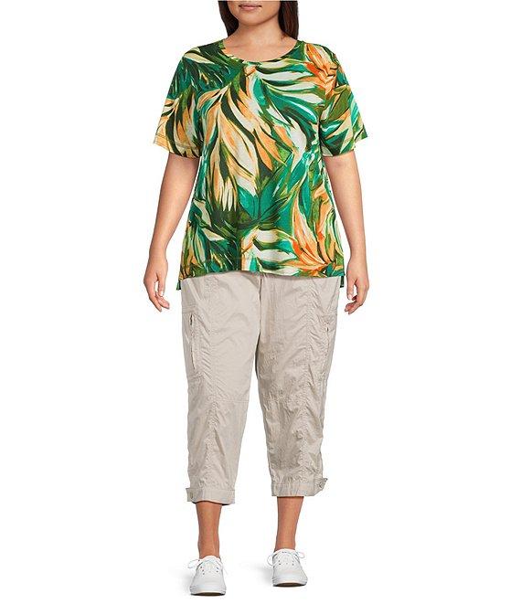 Westbound Plus Size Tropical Leaf Short Sleeve Crew Neck Top