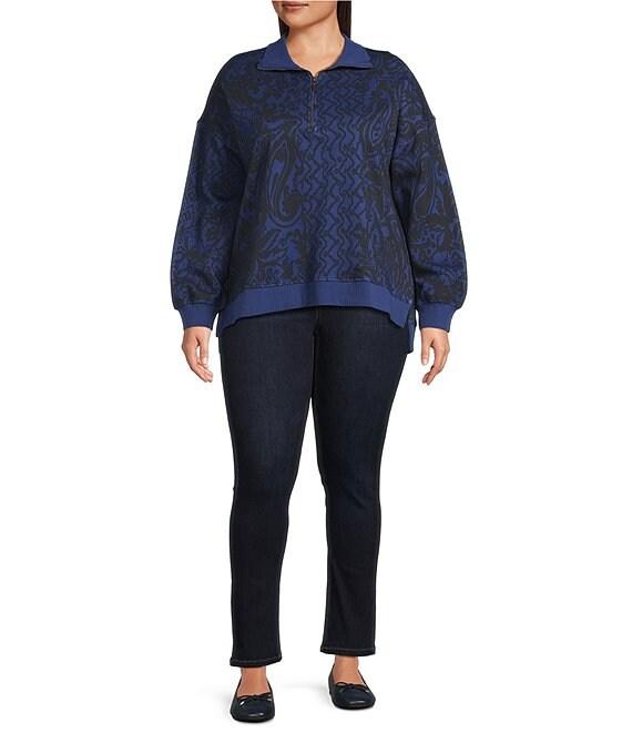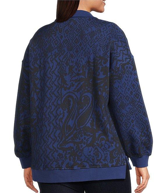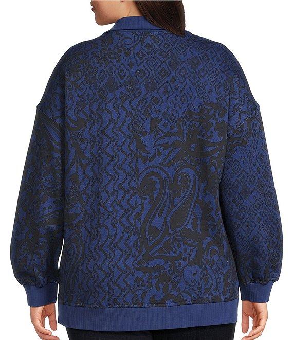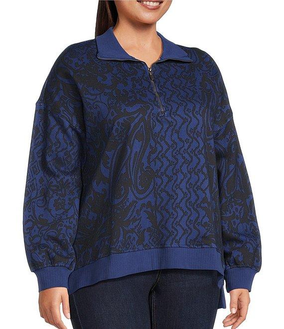 Westbound Plus Size Twilight Blue Paisley Patch Long Sleeve Quarter Zip Pullover