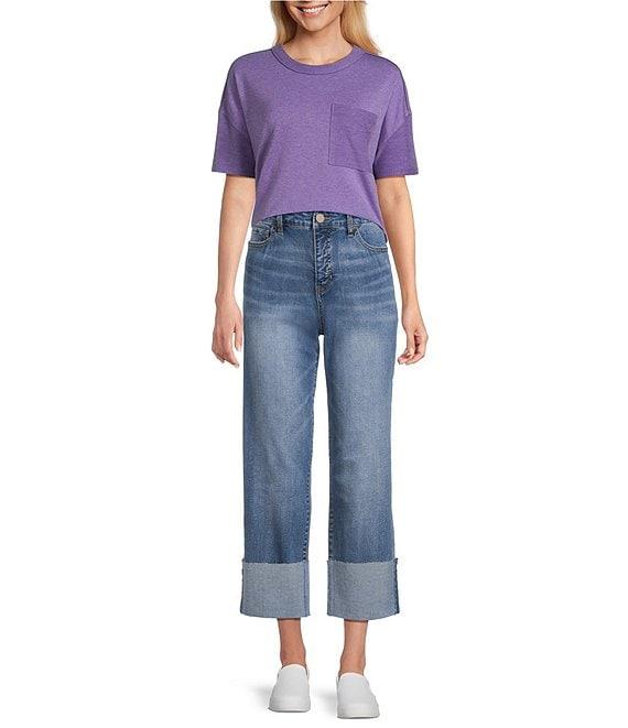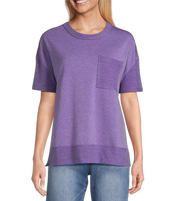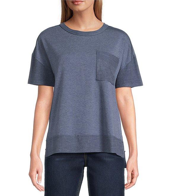 Westbound Petite Size Knit Short Sleeve Crew Neck Pocket Tee