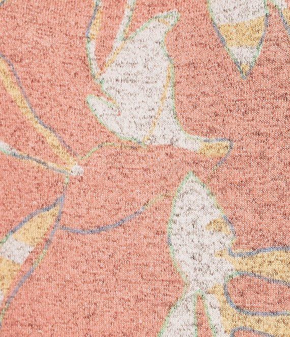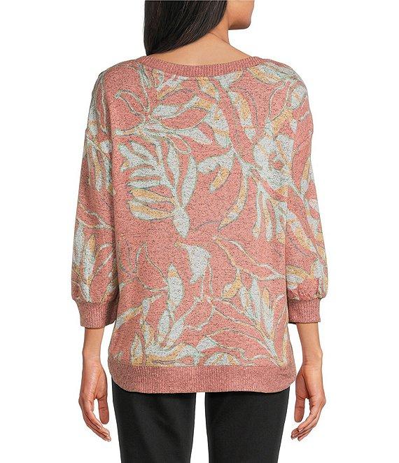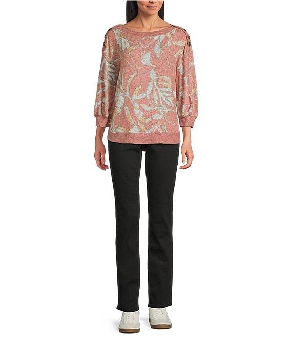 Westbound Sunset Leaf Print Knit Long Sleeve Button Shoulder Pullover Top