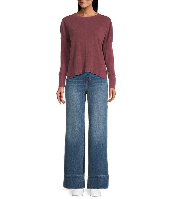 Westbound Waffle Solid Long Sleeve Crew Neck Pullover Top