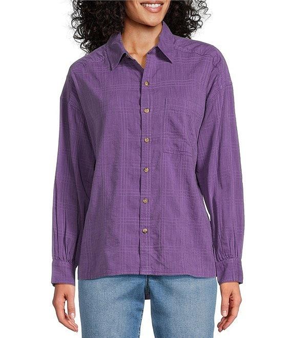 From Westbound Petite, this top features: Long sleeves Oversized boyfriend fit Plaid detail Point collar Pullover construction Cotton/viscose Machine wash/tumble dry Imported.
