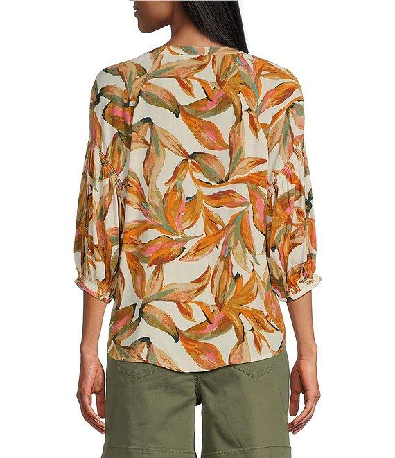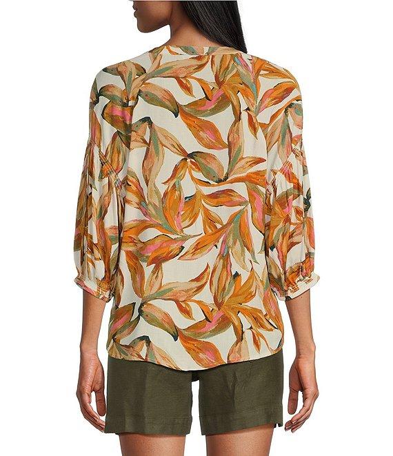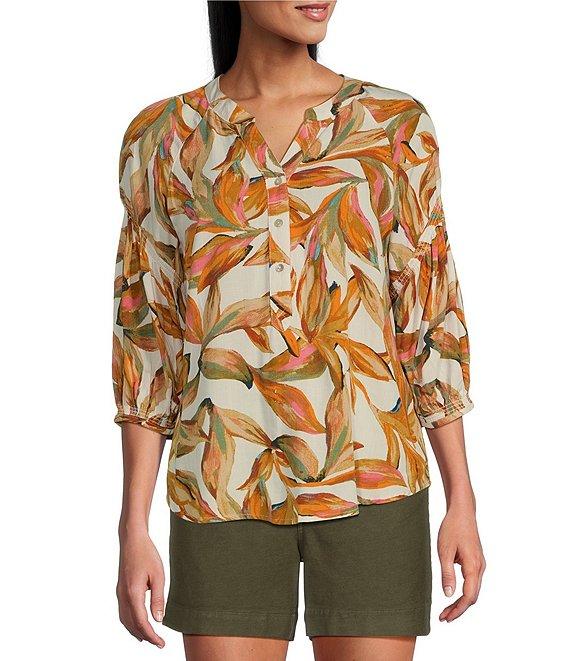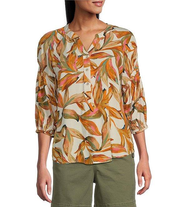 Westbound Woven Elbow Smock Sleeve Henley Blouse
