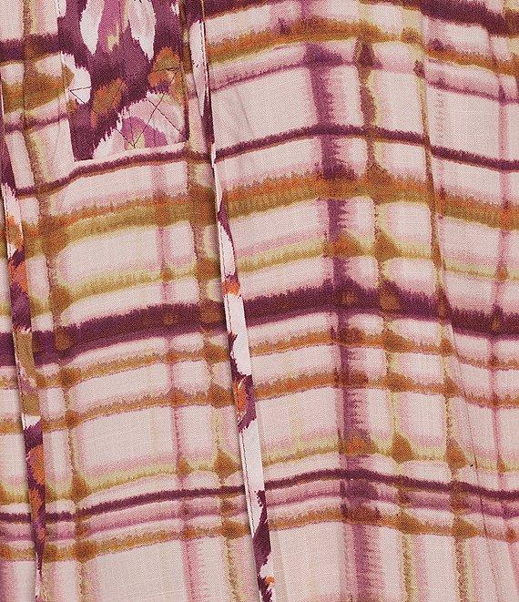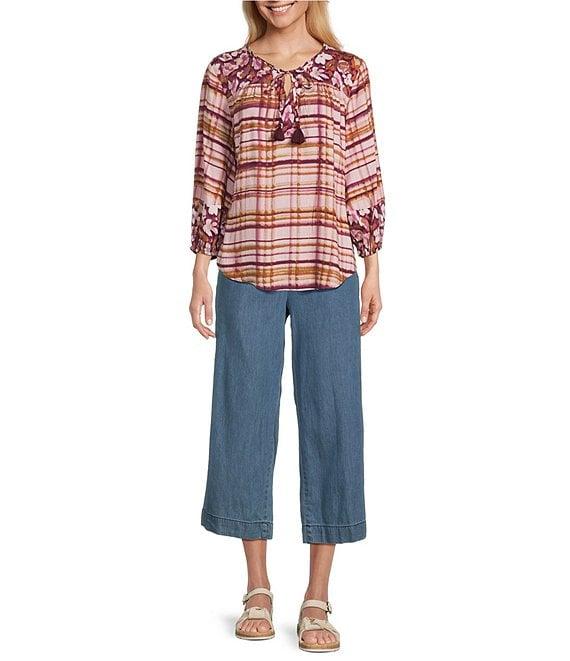 Westbound Woven Floral 3/4 Sleeve V-Neck Tie Blouse