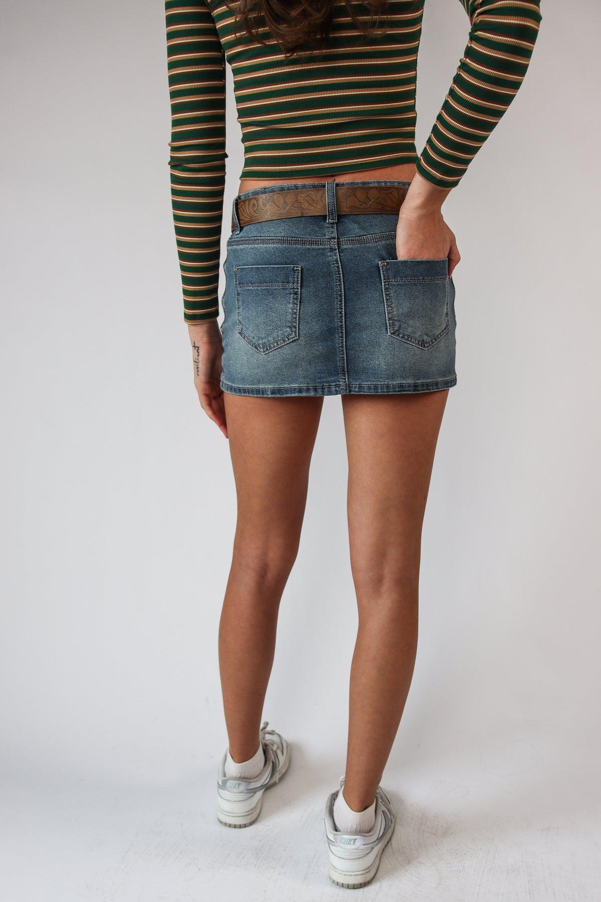 Western Belt Denim Mini Skirt