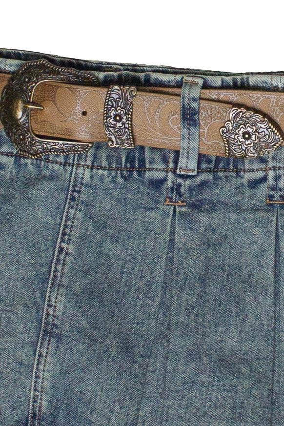 Western Belt Denim Pleated Mini Skort