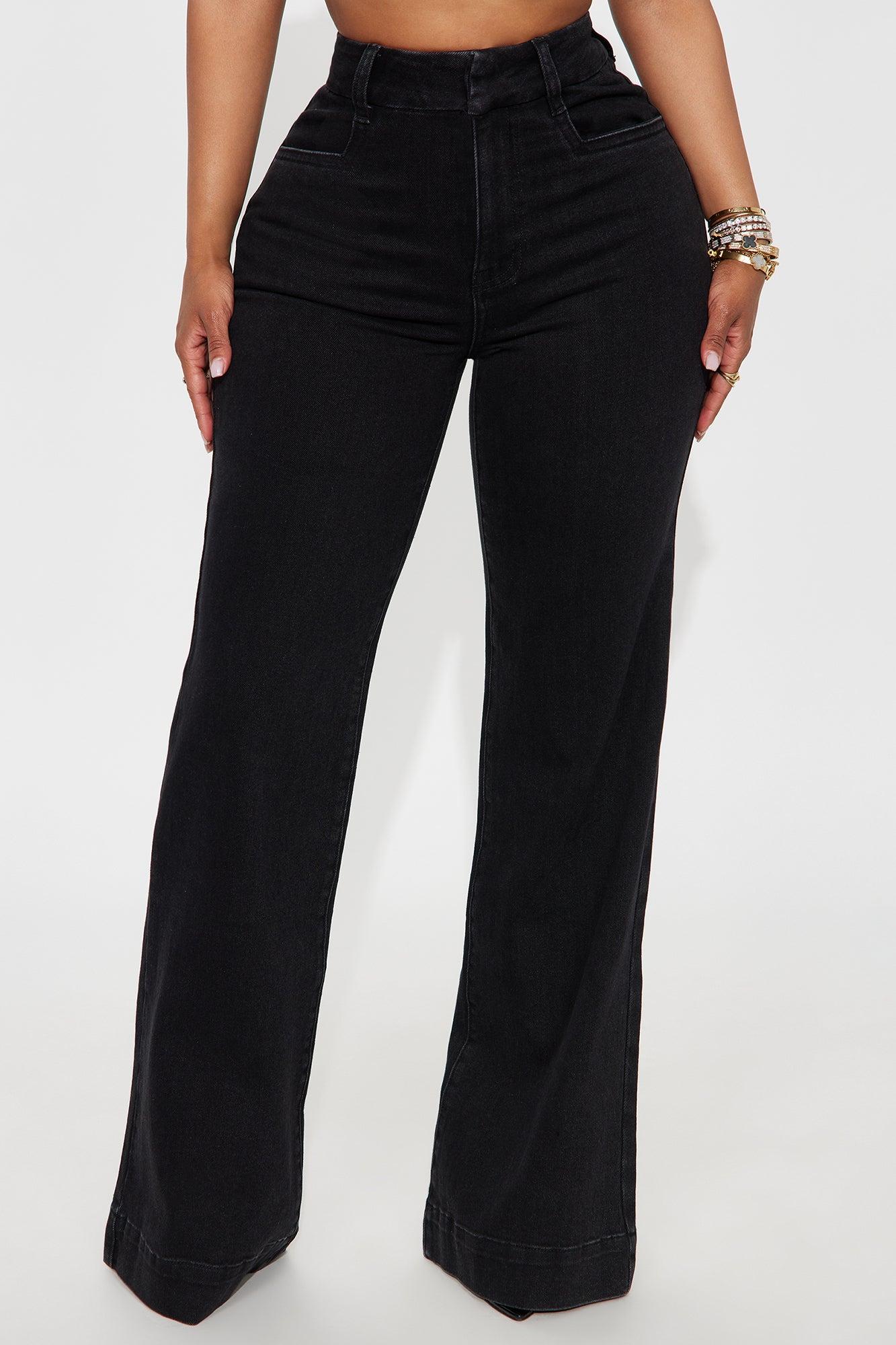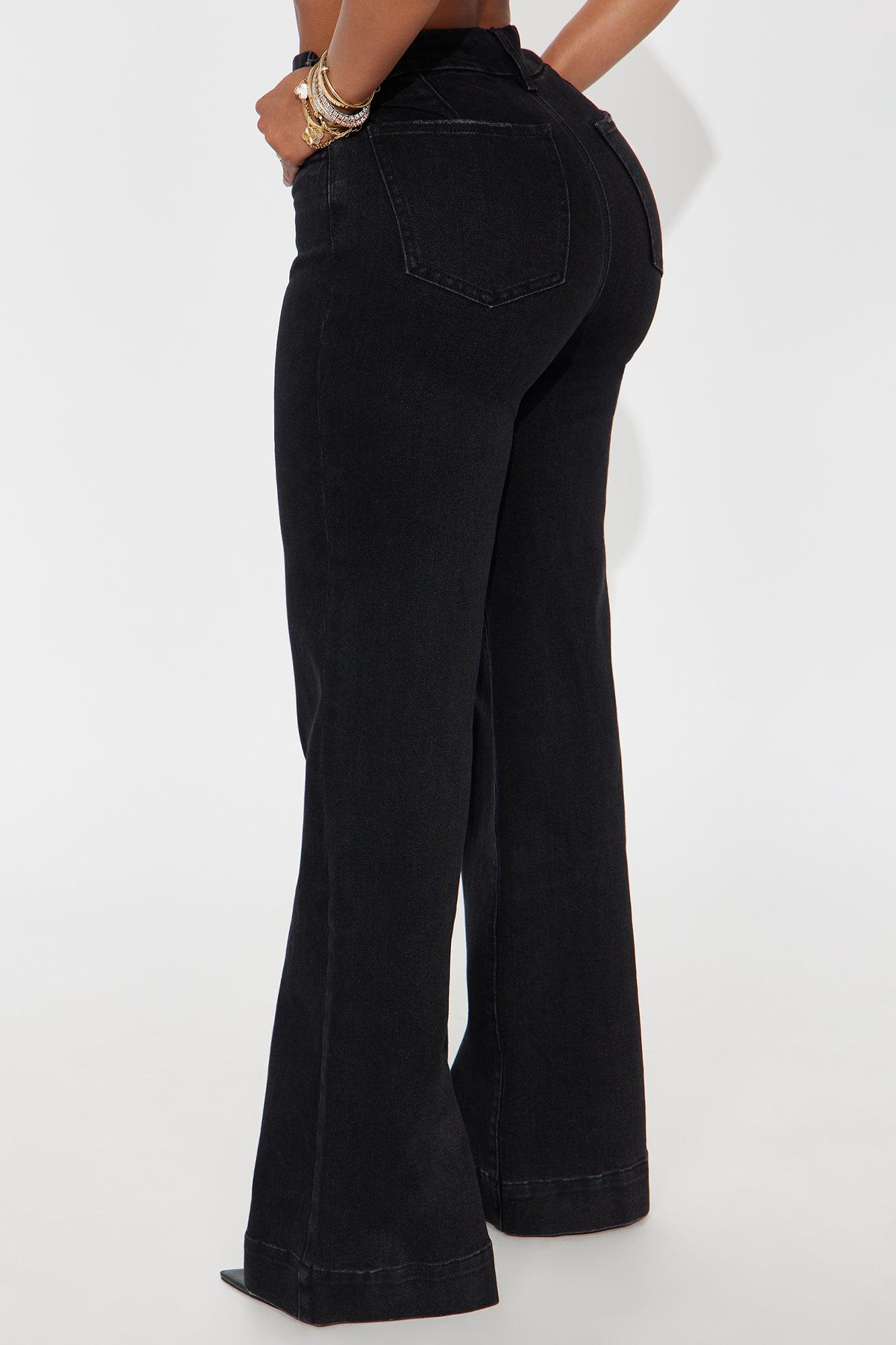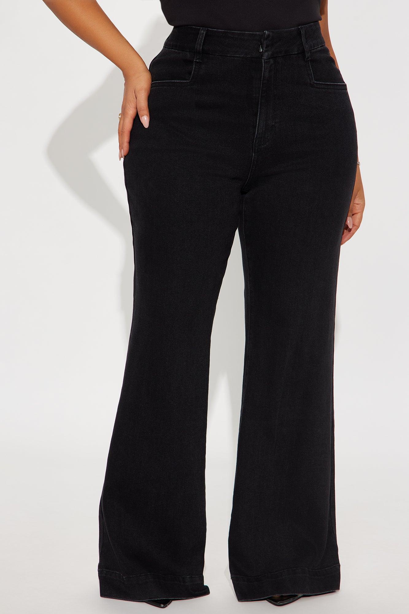 Available In Black Wash And Medium Wash. Trouser Flare Jean Trouser Pockets 12" High Rise 34" Inseam 24" Leg Opening Low Stretch Disclaimer Due To The Specialized Wash Process, Each Garment Is Unique. 98% Cotton 2% Spandex Imported California Proposition 65WARNING: Cancer and Reproductive Harm - www.P65Warnings.ca.gov.
