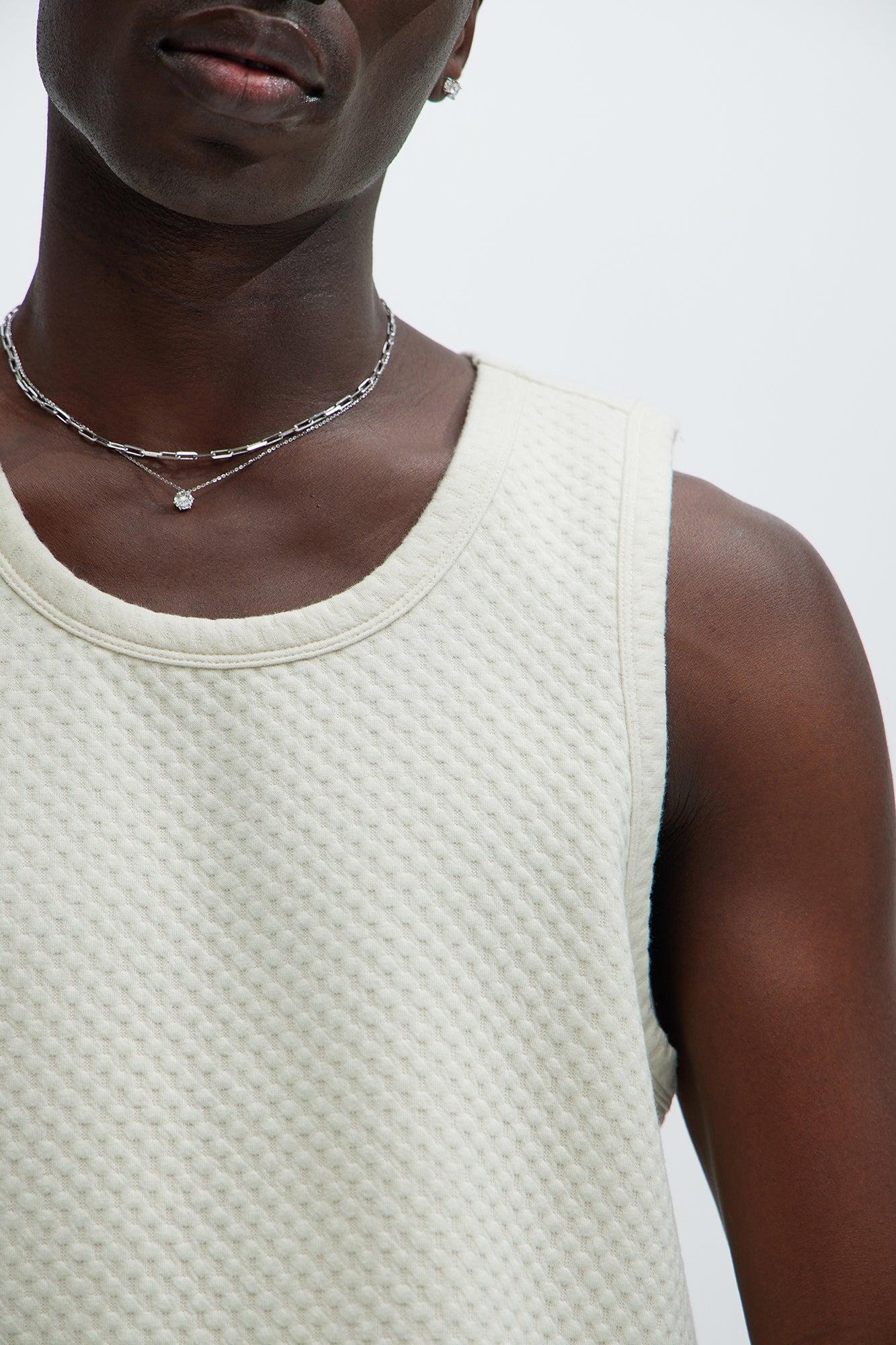 Available In Off White. Scoop Neck Sleeveless Textured Detail 95% Polyester, 5% Spandex Imported California Proposition 65 WARNING: Cancer and Reproductive Harm - www.P65Warnings.ca.gov.