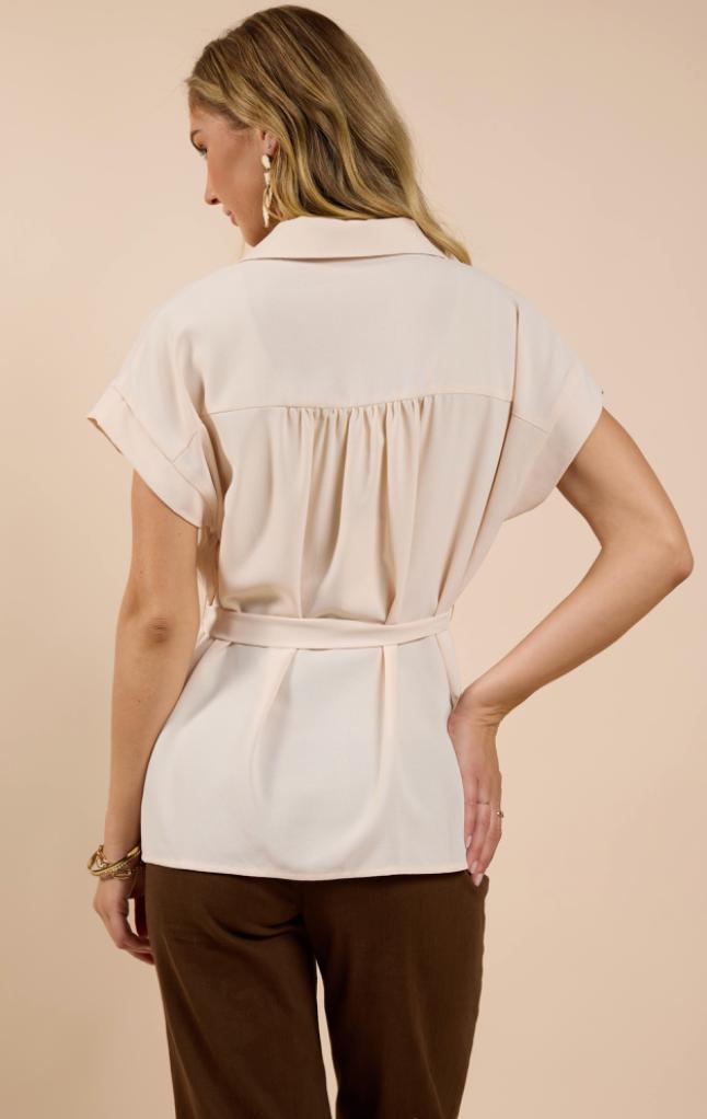 Westbound Woven 3/4 Tie Sleeve V-Neck Top