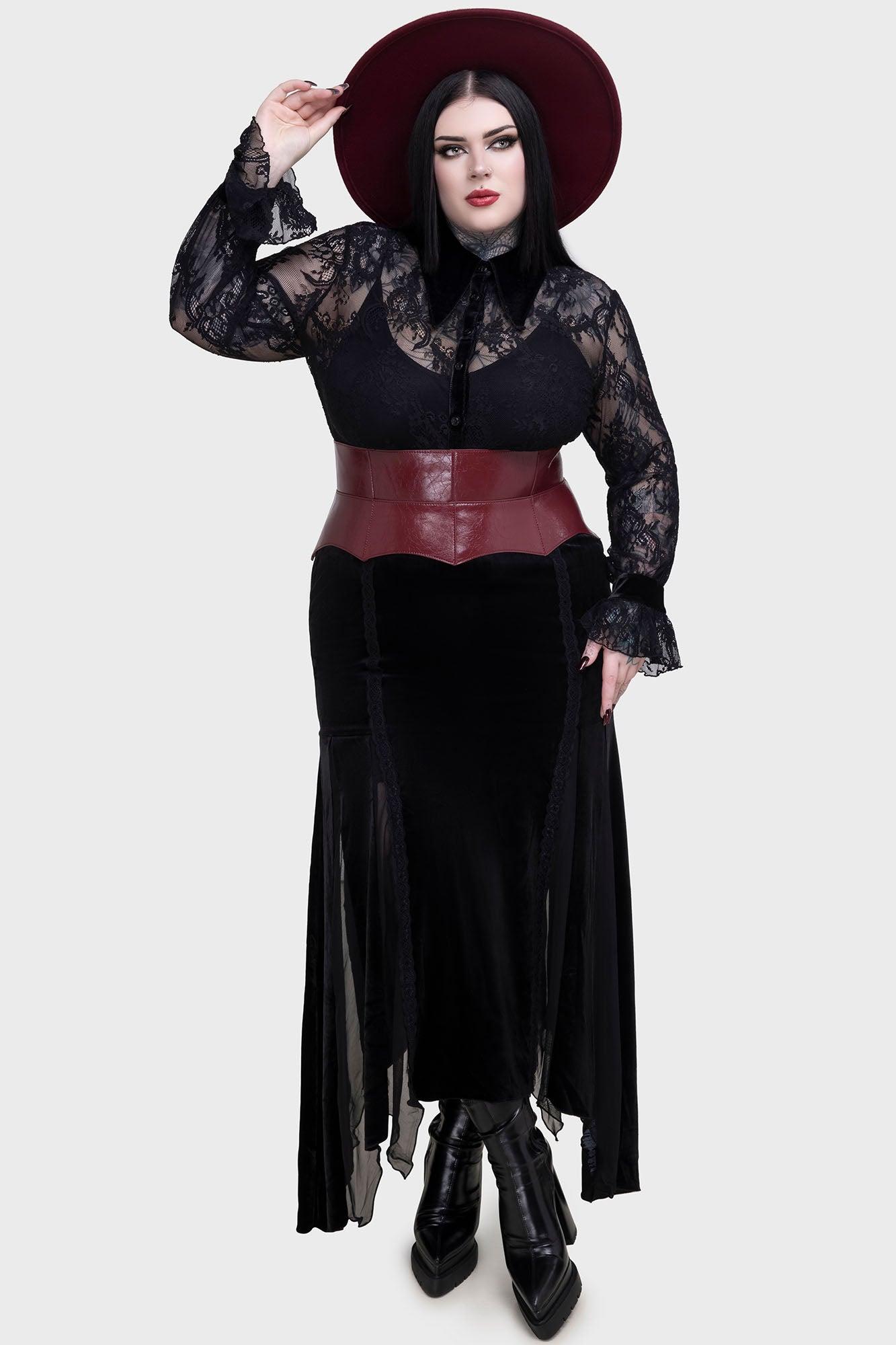 WETLAND.- Statement PU corset.- Adjustable lace up front closure.- Statement bat inspired scalloped edge.- Metal hardware.- Closure measurements:XS-S 64cm-71cm.M-L 74cm-81cm.XL-XXL 84cm-93cm.3XL-4XL 94cm-102cm.With KILLSTAR branding, 100% Polyurethane.Do not wash / Do not bleach / Do not tumble dry / Do not iron / Do not dry clean. Wipe clean with a damp cloth. Imported.