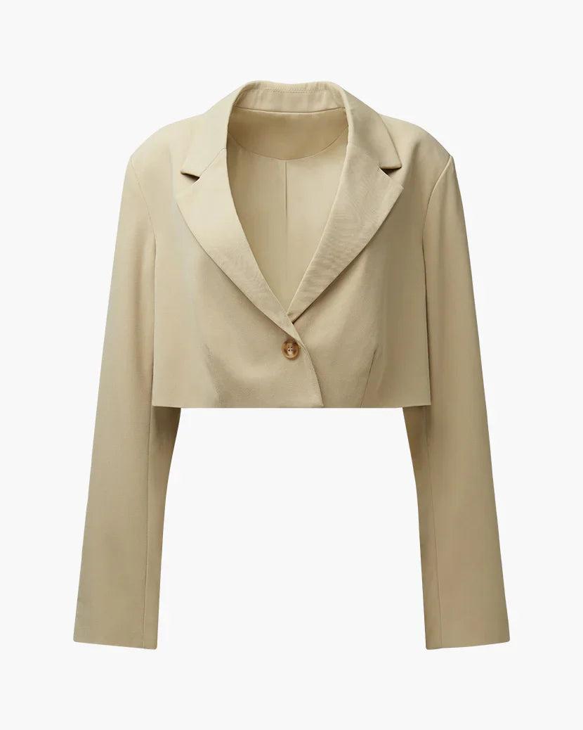 Our Boxy Cropped Blazer comes in fully lined stretch twill with a single-breasted, one-button closure. It falls to a cropped length and features padded shoulders and an oversized, structured fit.