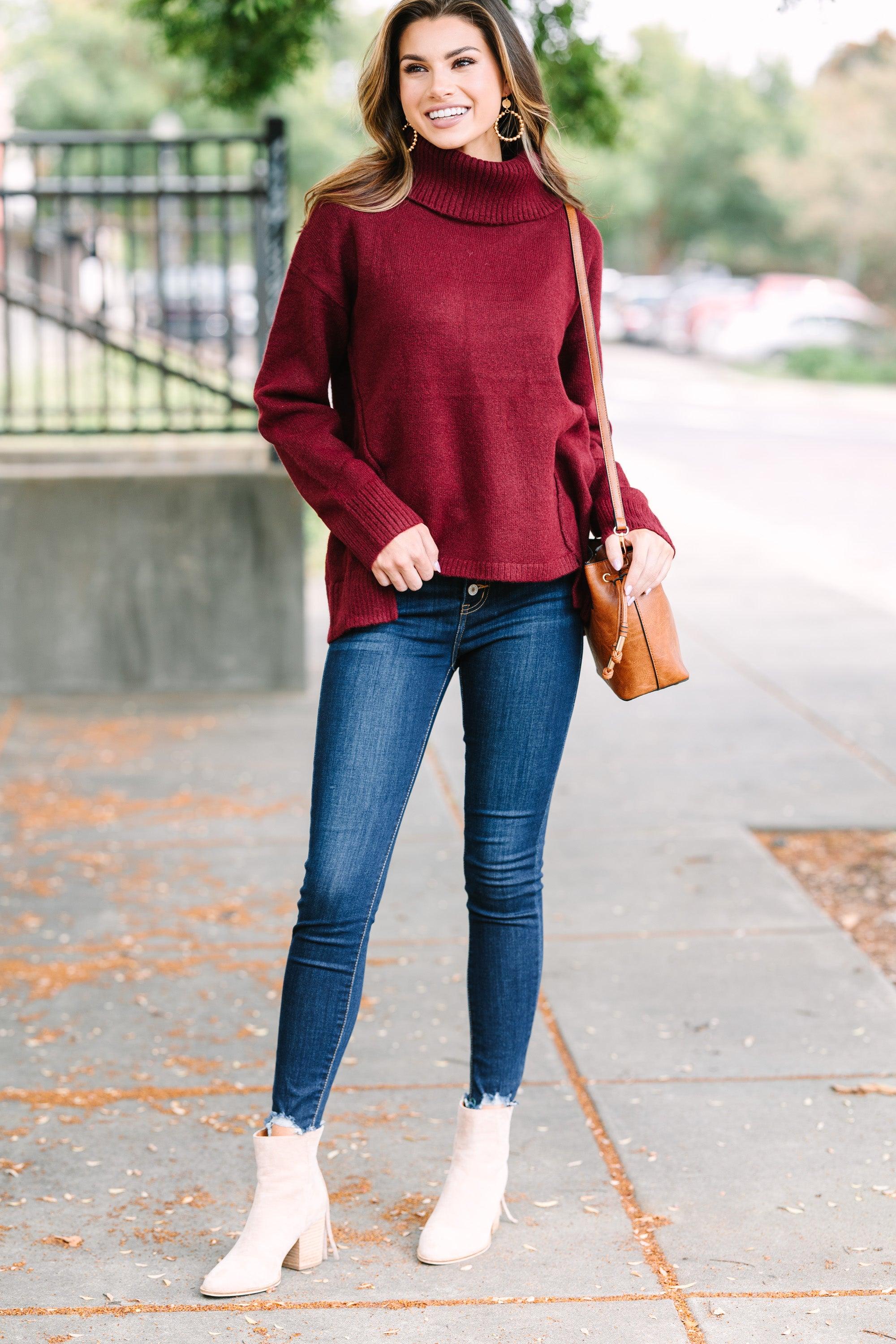 What a day! It's finally sweater weather and you get to rock this cozy cutie! That hue is so rich and we love that turtleneck! This sweater is going to look great with jeans or skirts this fall and winter! Turtle neck Long sleeves Uneven hemline Generous stretch Savannah is wearing the small.