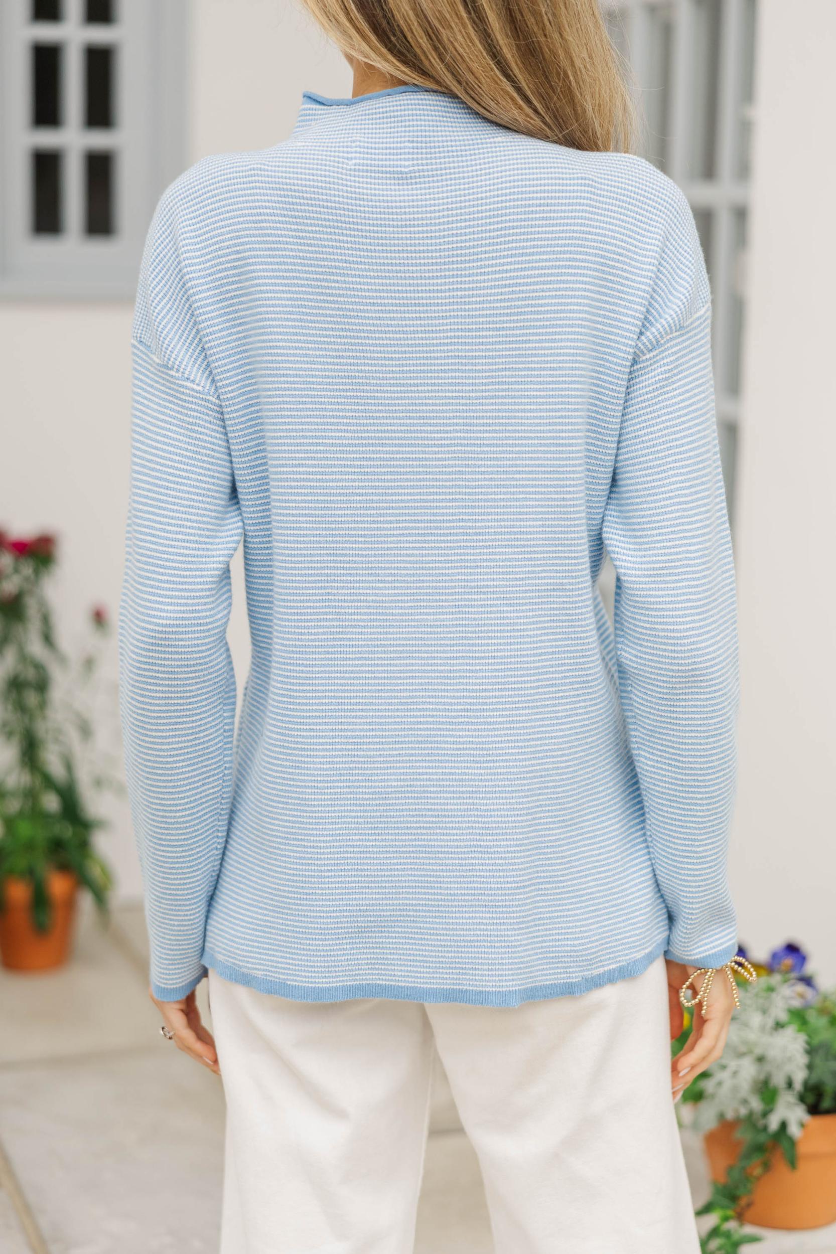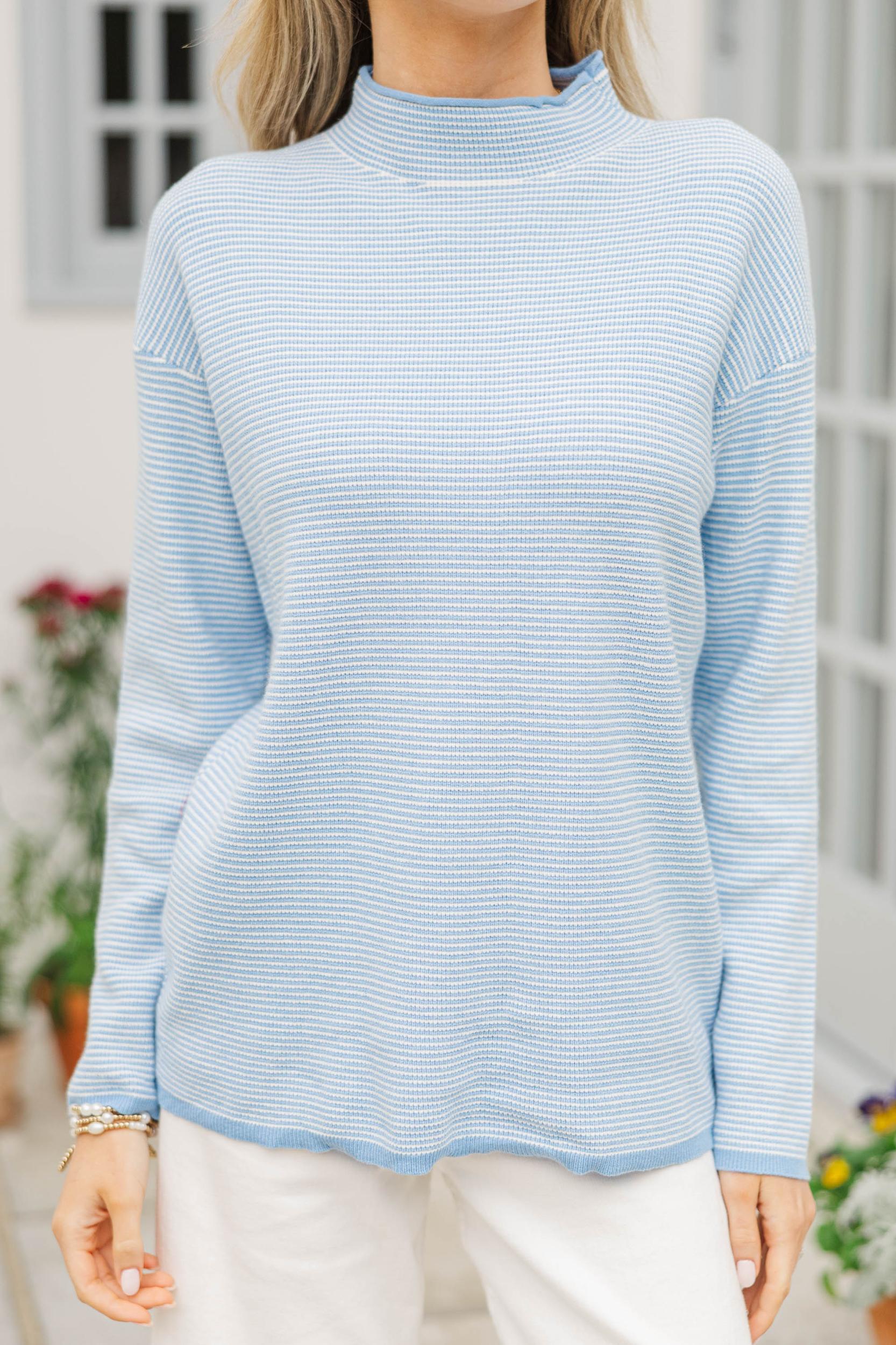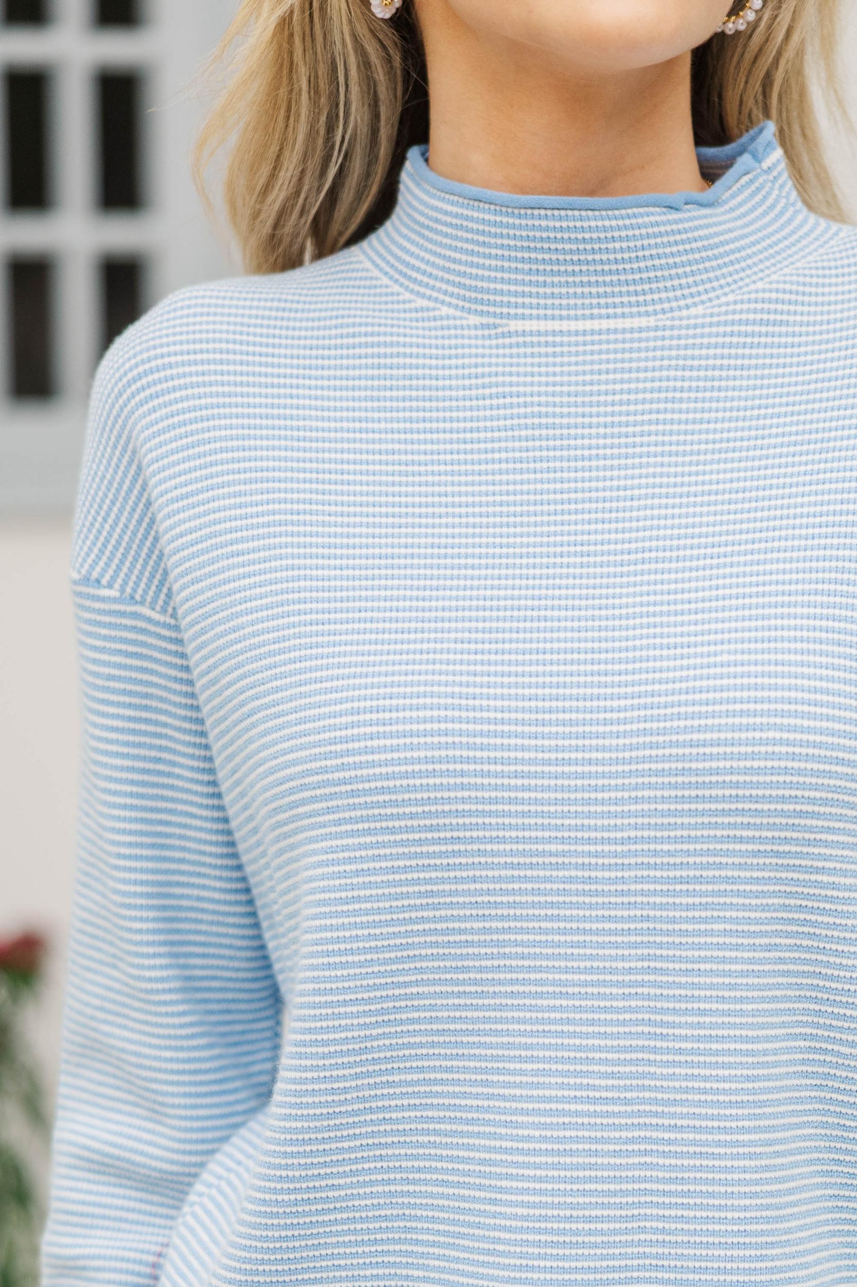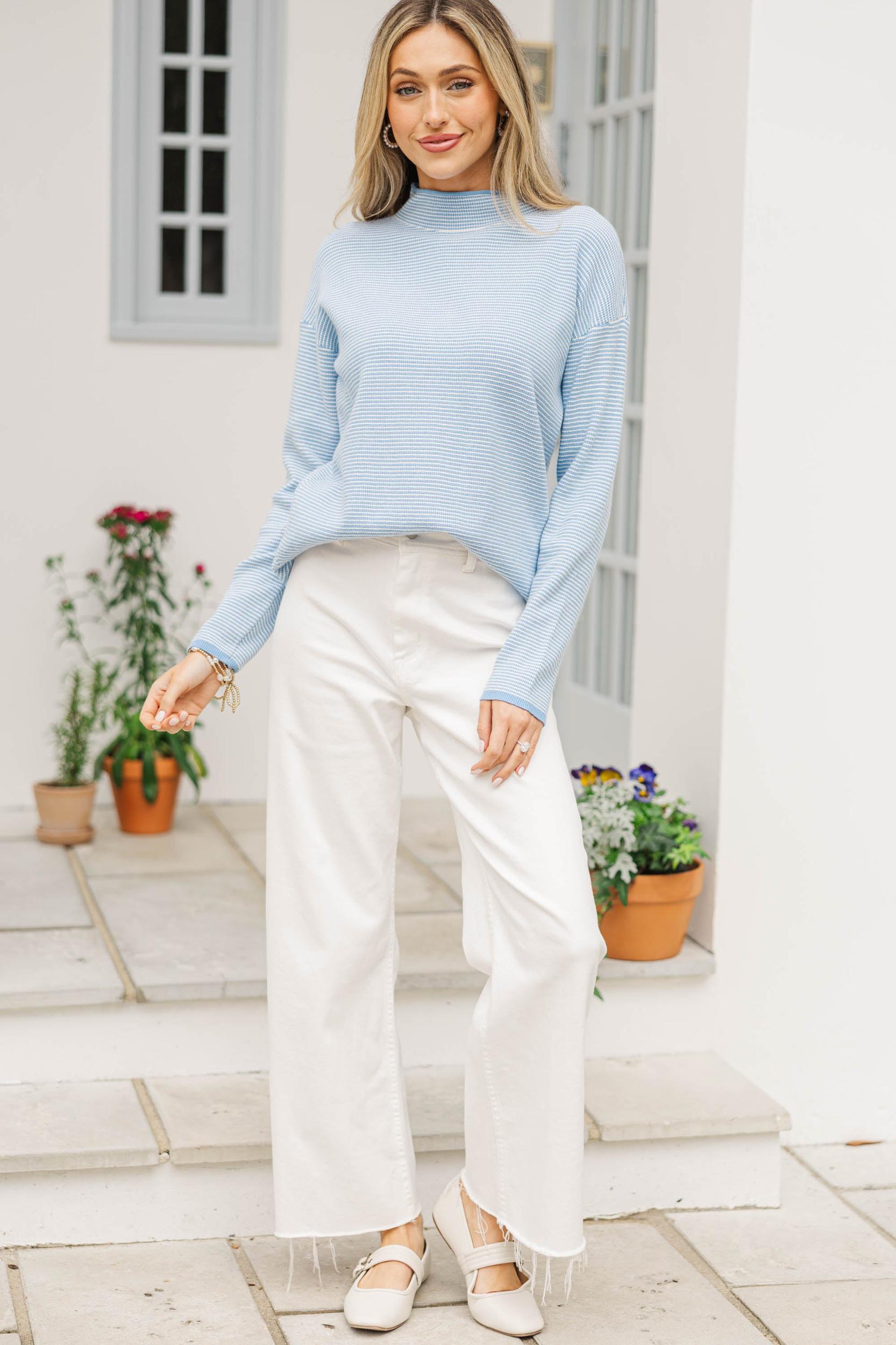 This easygoing striped top is a closet staple with a clean, polished feel you can dress up or down. The lightweight knit drapes comfortably while still feeling pulled together for everyday wear. Pair it with denim, trousers, or skirts for a timeless, effortless look. Mock neckline Long sleeves Straight hemline Lightweight knit fabric Slight stretch London is wearing the small.