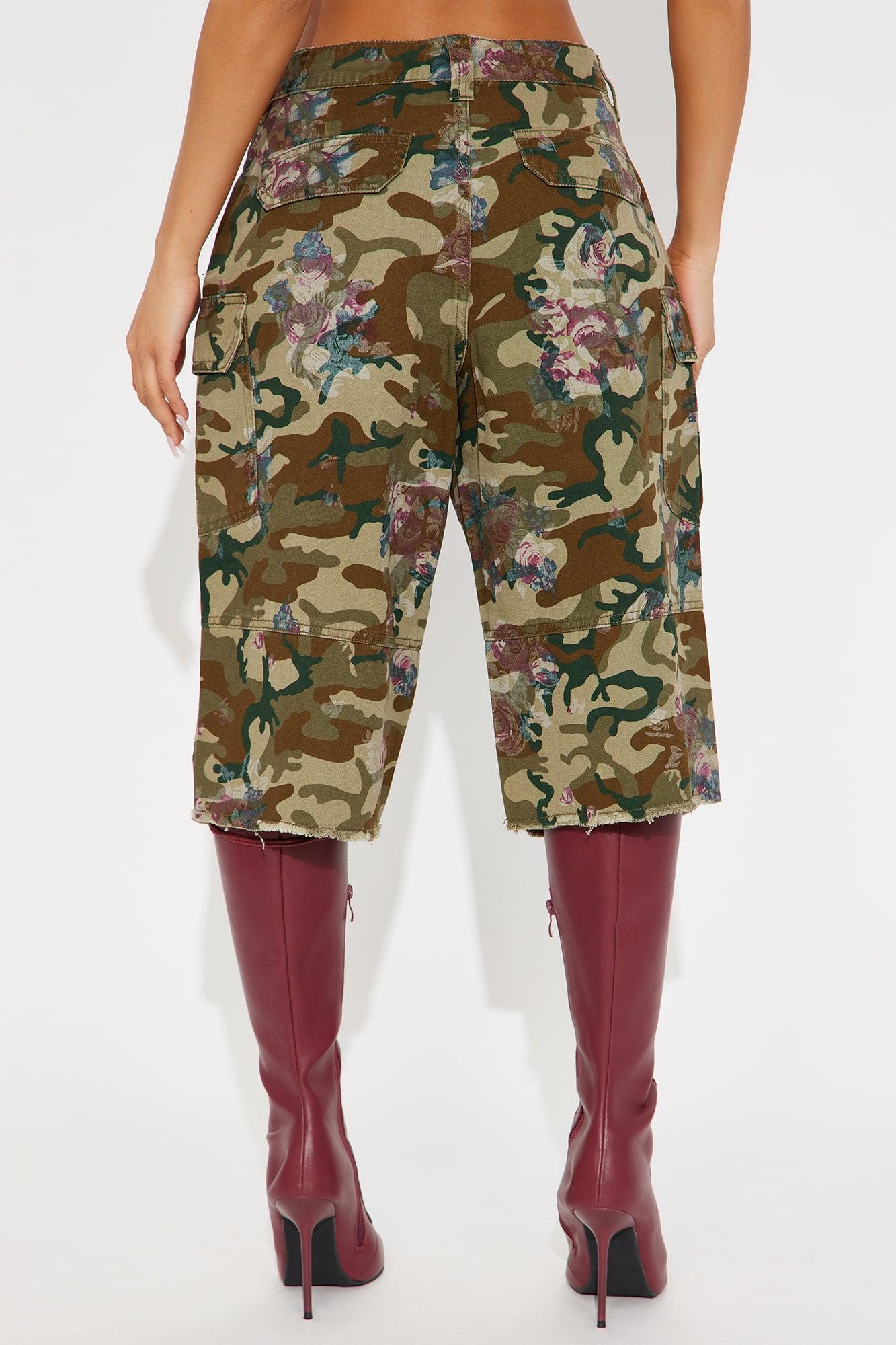 Available In Olive/combo. Bermuda Short Mid Rise Button & Zip Closure Hand & Back Pockets Cargo Pockets With Snap Closure Camo Print Floral Print Non Stretch 100% Cotton Imported California Proposition 65 WARNING: Cancer and Reproductive Harm - www.P65Warnings.ca.gov.