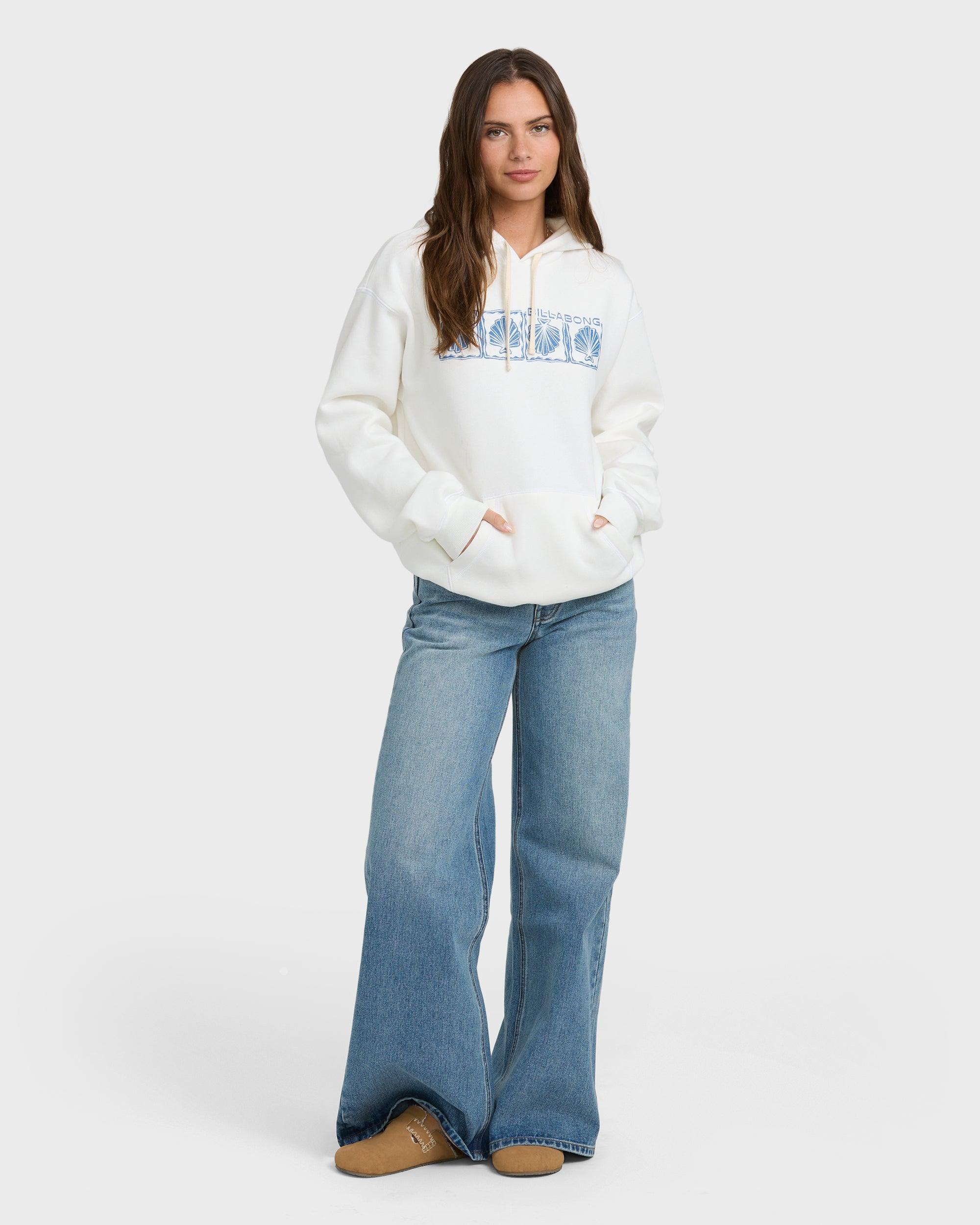 Soft cotton-blend fleece meets laid-back style in our relaxed-fit pullover hoodie. The screen-printed design adds personality, while the kangaroo pocket keeps essentials close during casual adventures. Featured here in the White colorway. Features 55% Cotton, 45% Polyester Fleece, Piece dye with garment wash Pullover hoodie Relaxed fit Hood and Kangaroo pocket Screen print