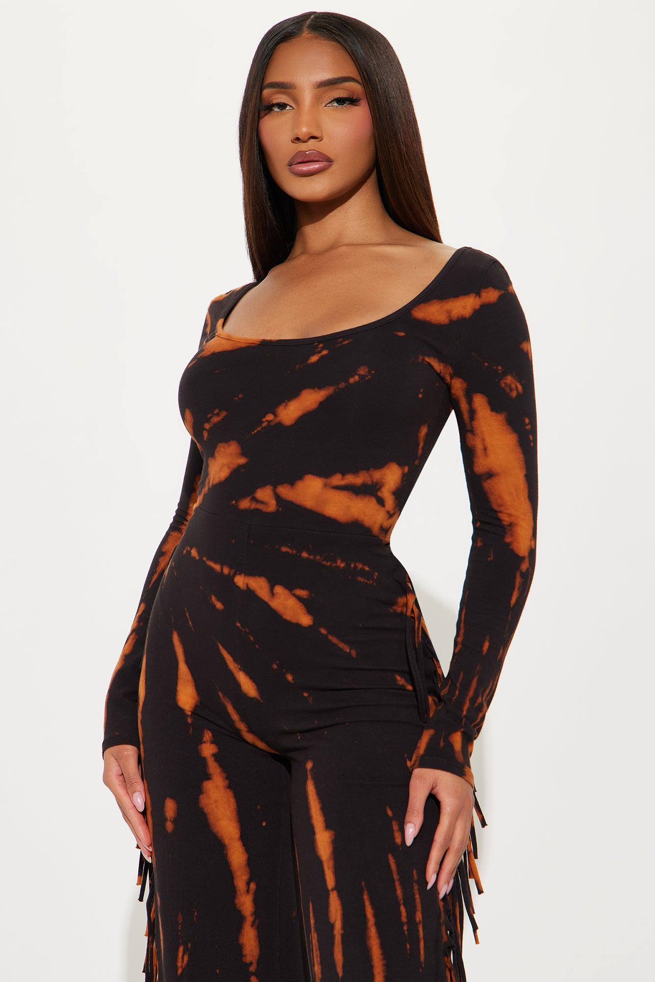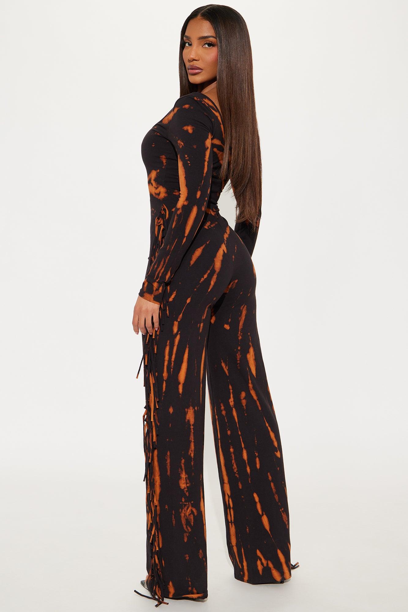 While We Wait Long Sleeve Jumpsuit - Black/combo
