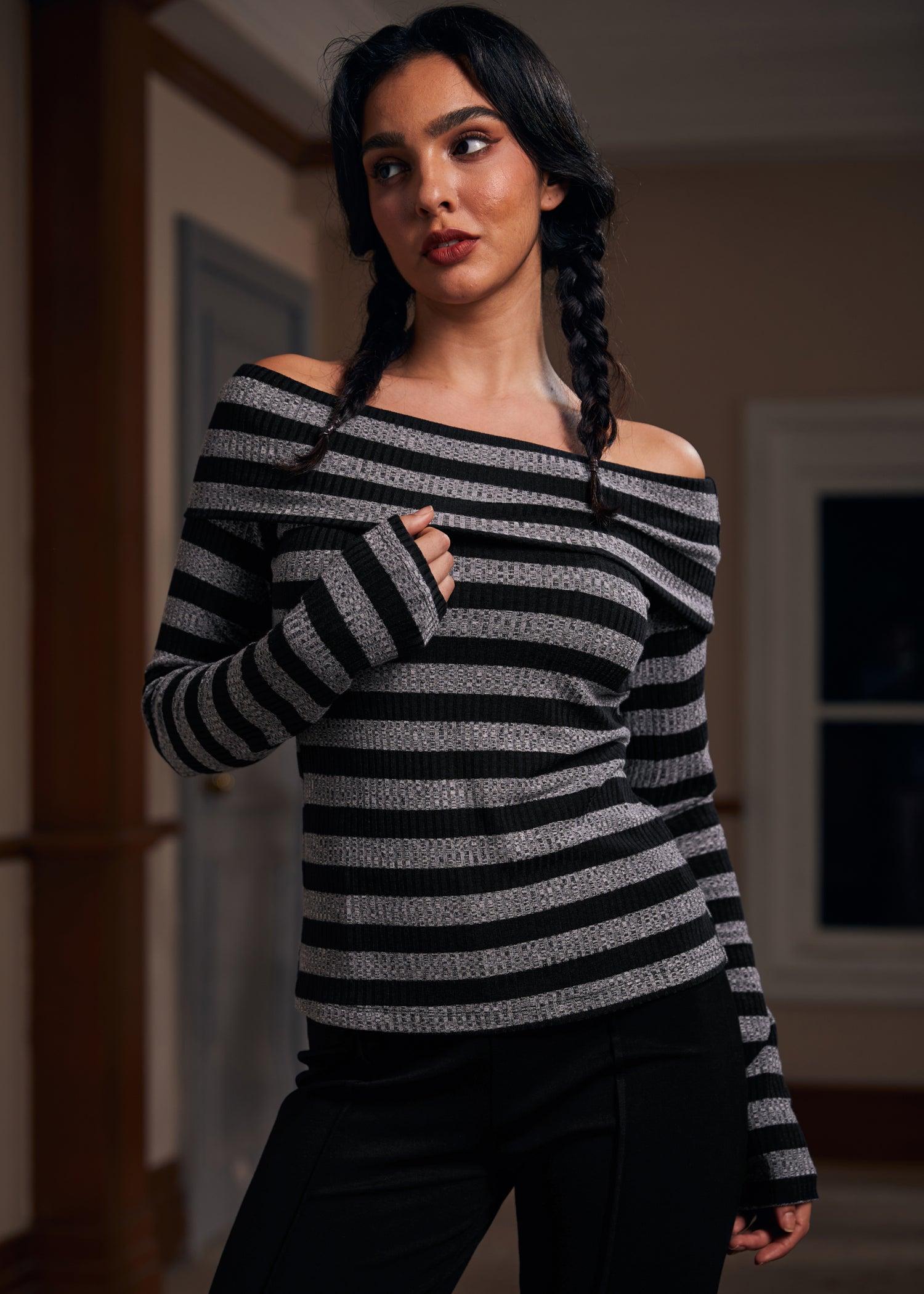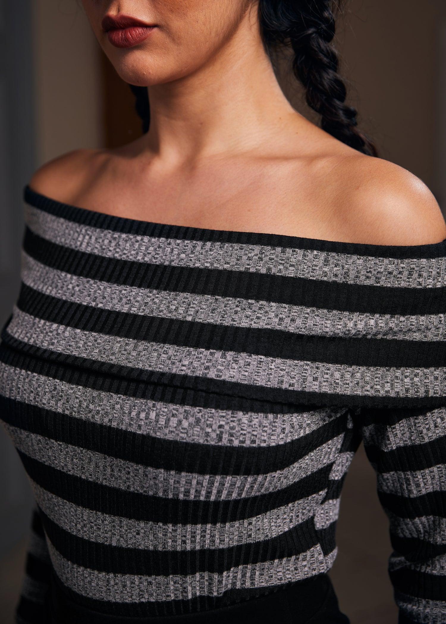 Embrace the crisp air of fall with the Whimsy in the Woods Top, a timeless piece from our ModCloth namesake label. Crafted from rib stripe knit fabric, this off-shoulder long-sleeved top is the epitome of autumnal elegance and comfort. Its knit construction offers medium stretchability, ensuring a cozy fit that moves with you. Perfect for those leisurely hayrides, evening bonfires, or casual outings with friends, the Fall Breeze Blouse pairs effortlessly with your favorite denim or skirts, making it a versatile addition to your fall wardrobe that celebrates the season's casual yet fashionable essence. Machine wash cold, line dry Length 21" Imported 48% Polyester,48% Viscose,4% Elastane Model is wearing a US size S Model Measurements: Height 5'5"/Bust 34"/Waist 24"/Hips 36"