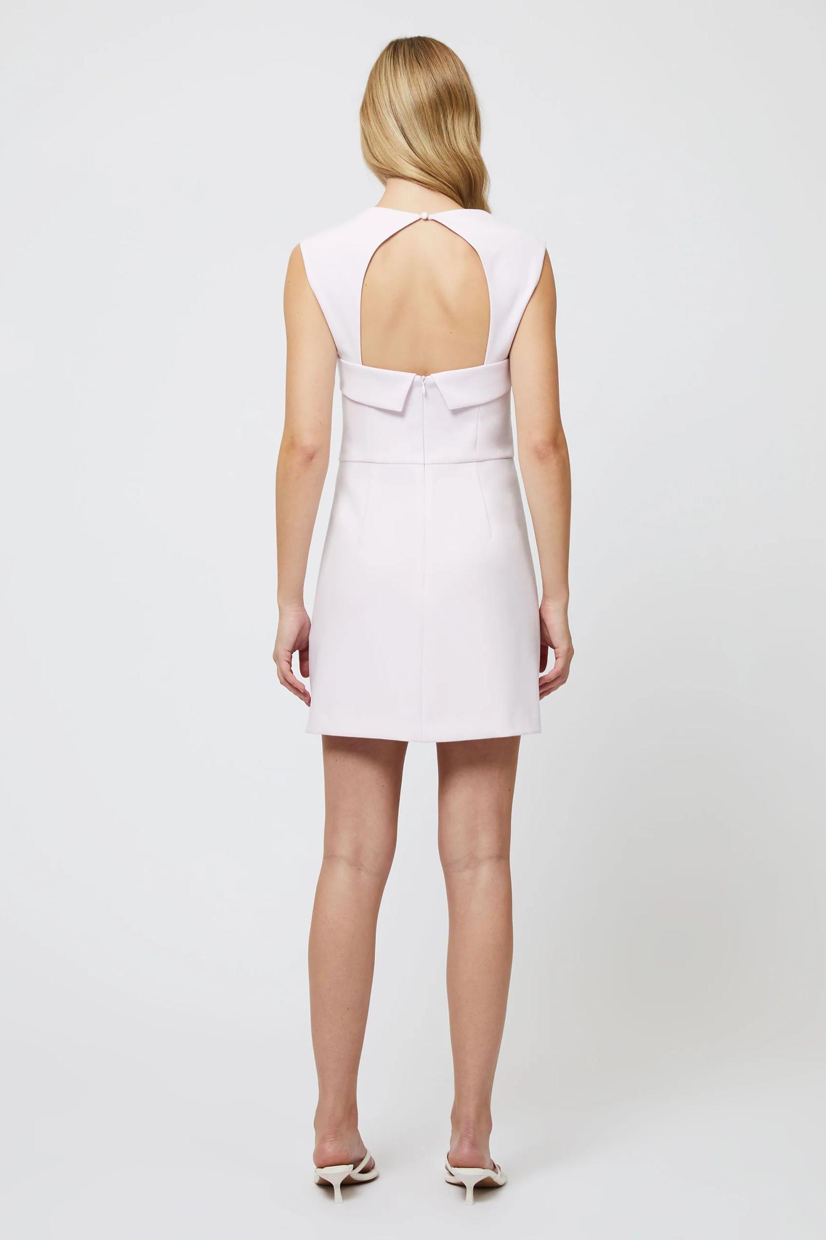 The Whisper Collar Mini Dress offers a stylish and versatile addition to any wardrobe. With a flattering scoop neck and low back, this dress is perfect for springtime occasions. The delicate collar adds a touch of sophistication to your look.