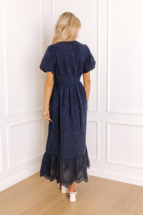 - Make every moment sweeter in this eyelet dress! Puff sleeves and a flowy fit make it perfect for coffee dates, casual strolls around town, or anytime you want to add a little extra charm to your outfit. - Lined eyelet material - A v-cut neckline - Short puff sleeves with elastic cuffs - A stretchy smocked section on the back of the waistline - Hidden side pockets - A flowy and flattering silhouette that ends in a straight hemline